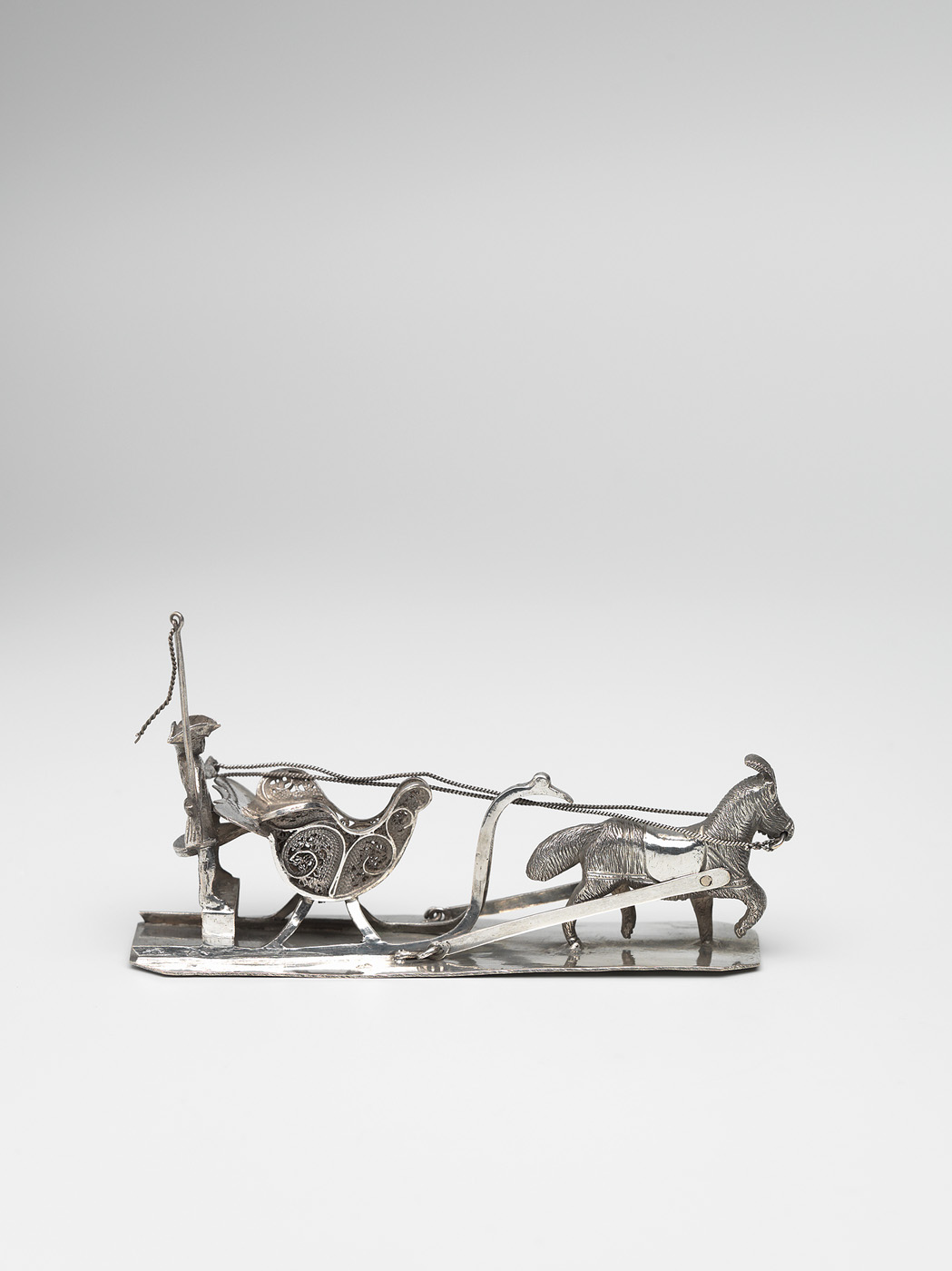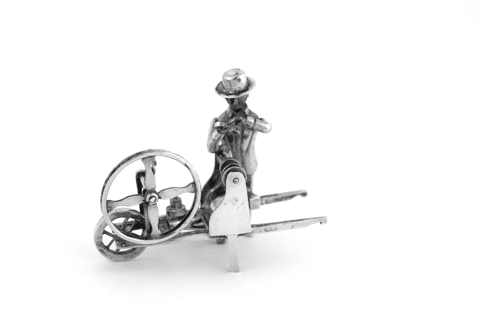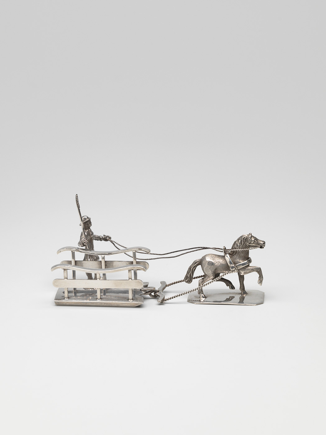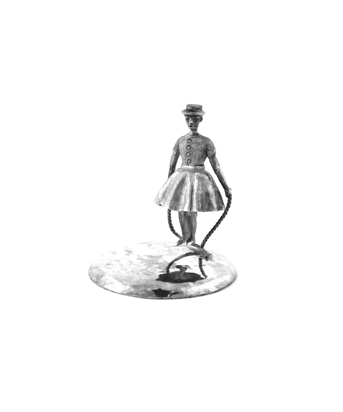 Duwslee met vrouwfiguur waarachter een duwende man o...