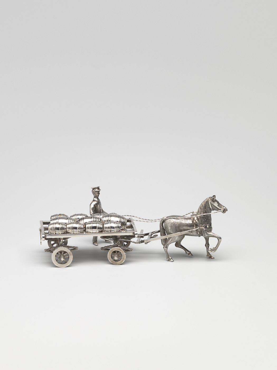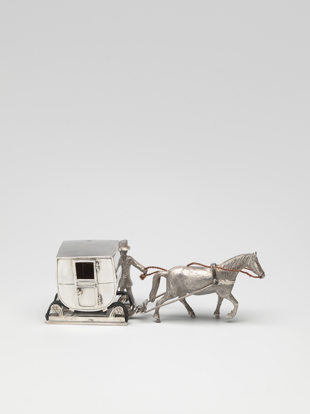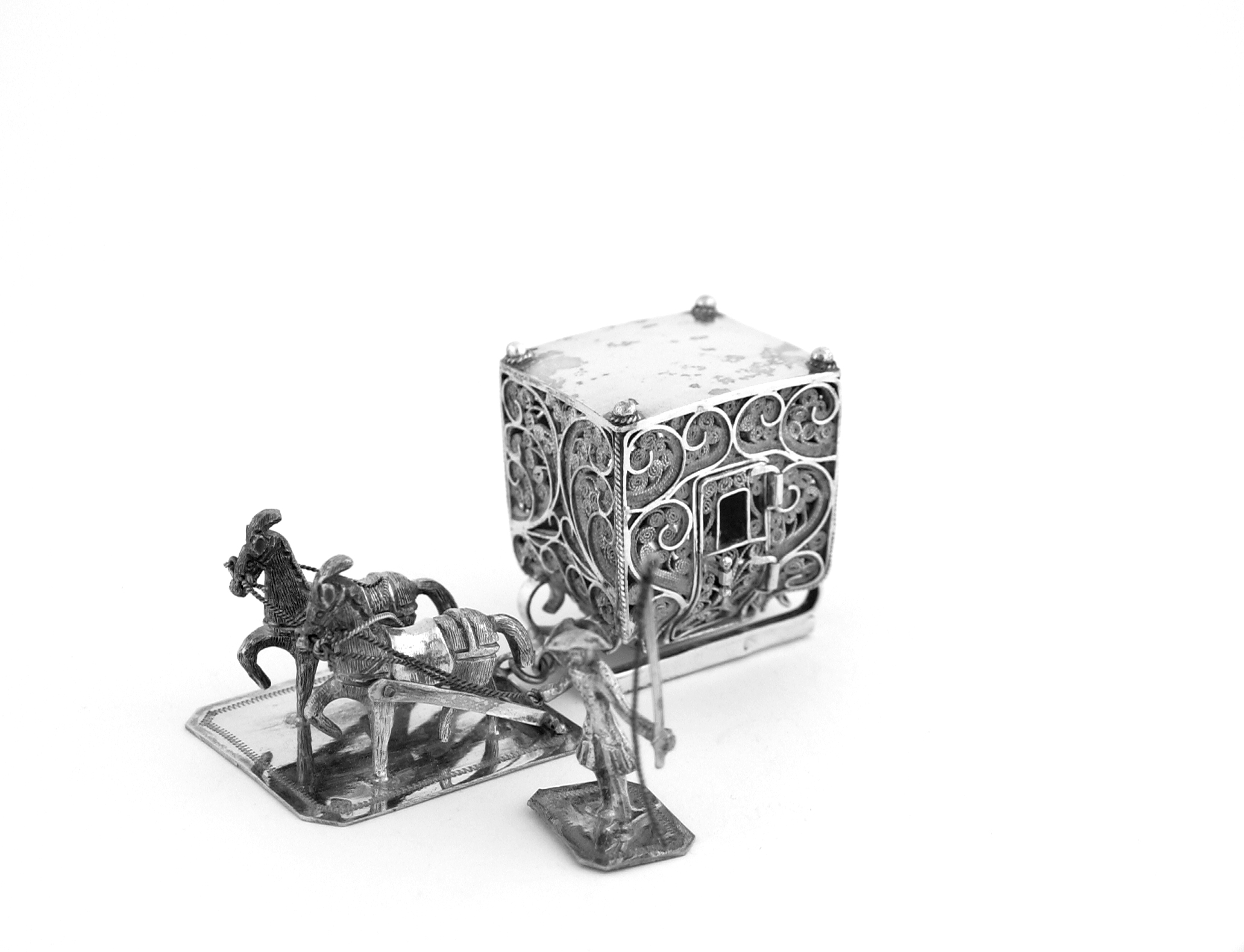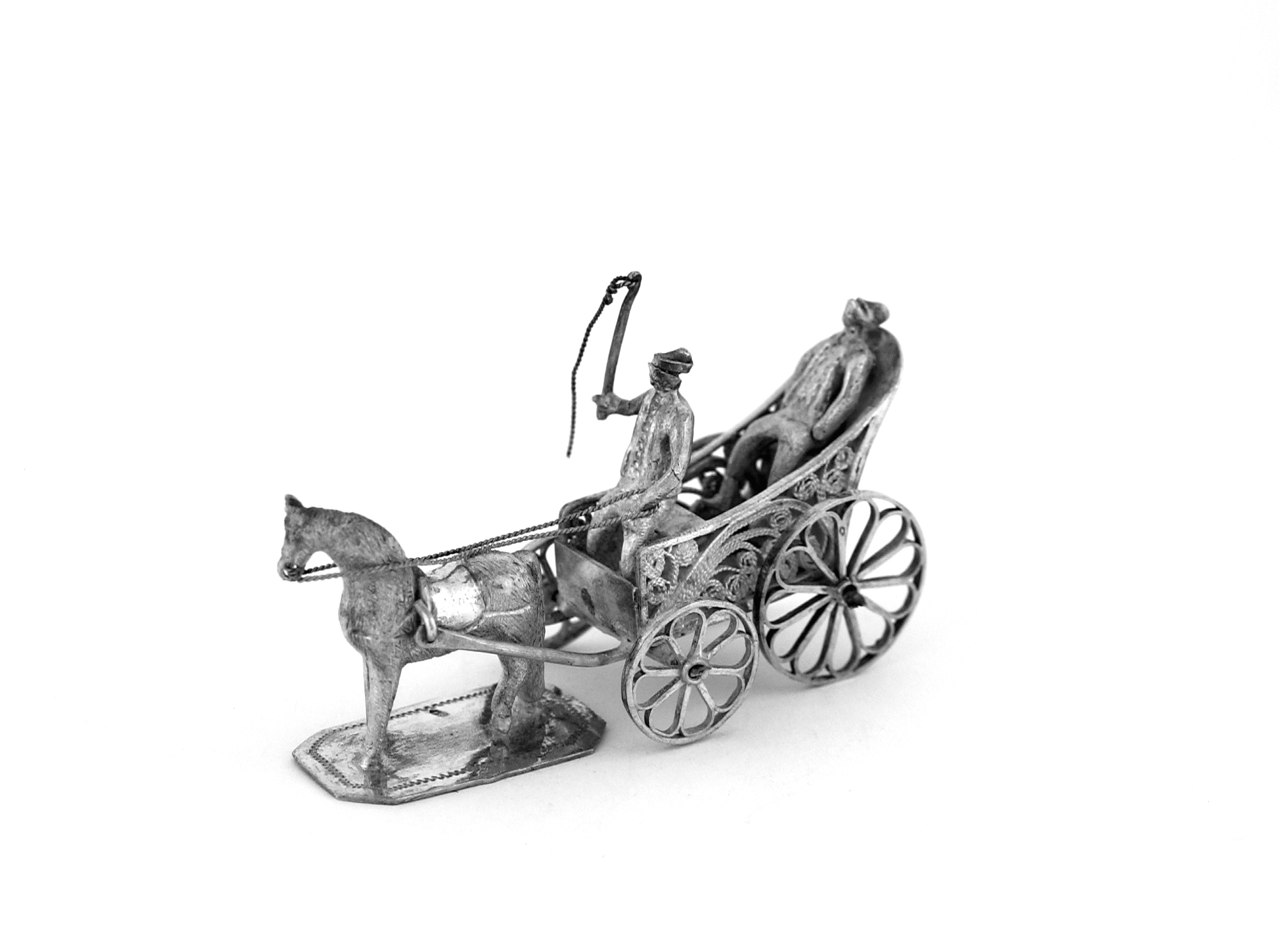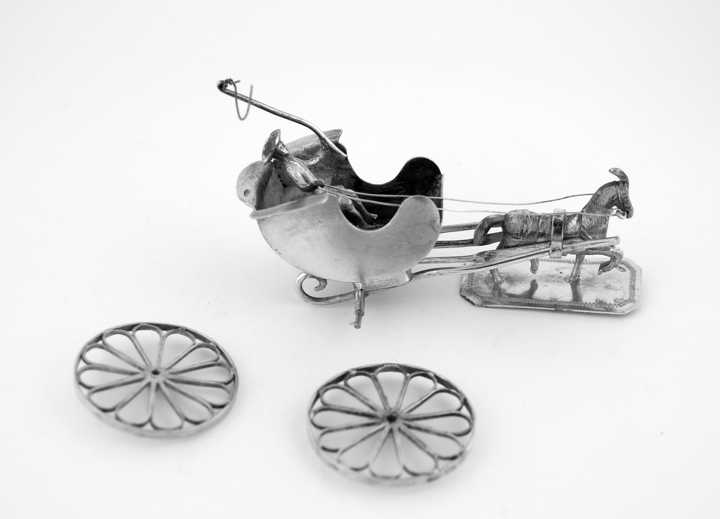 Duwslee met vrouwfiguur waarachter een duwende man o...