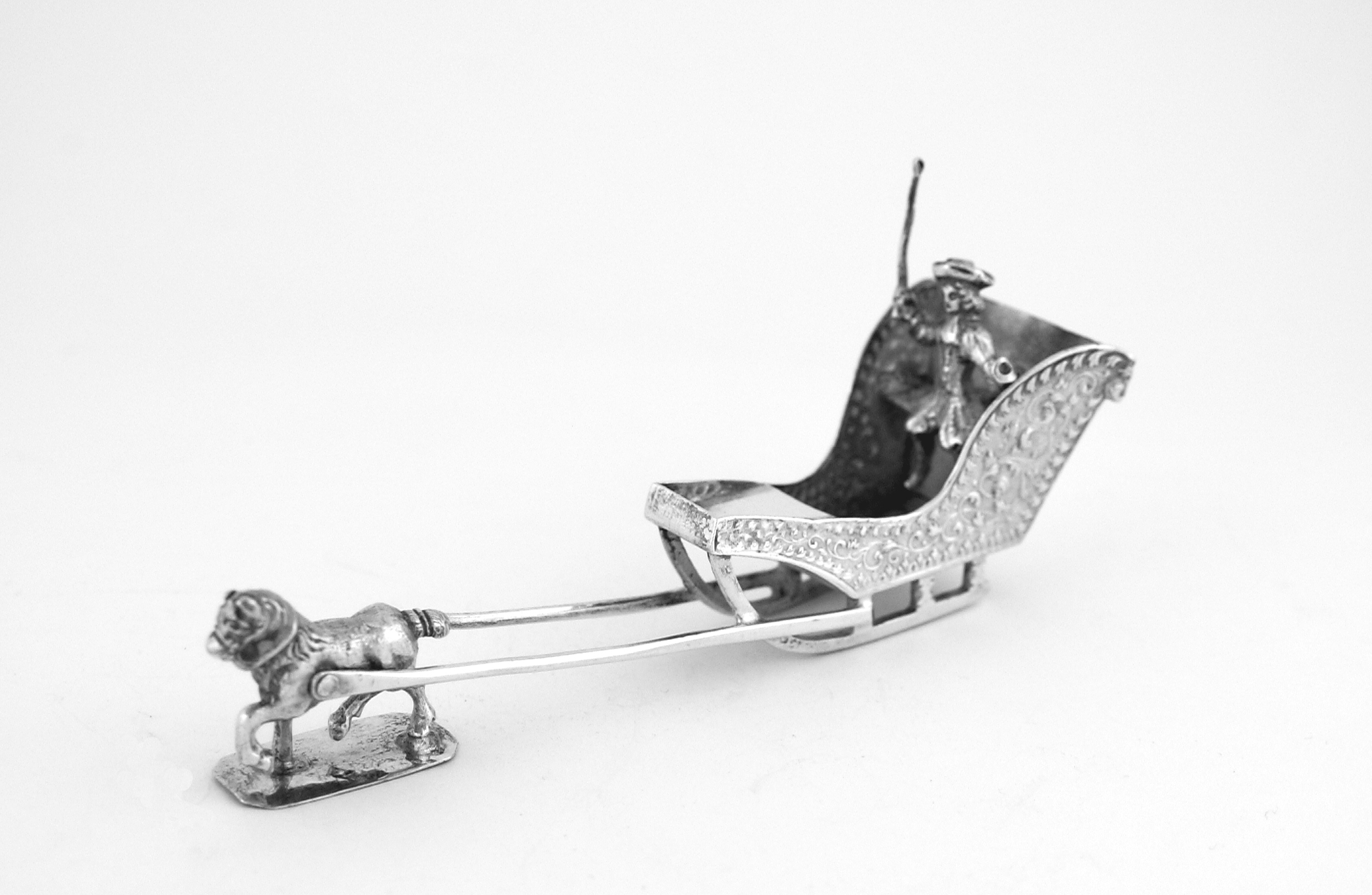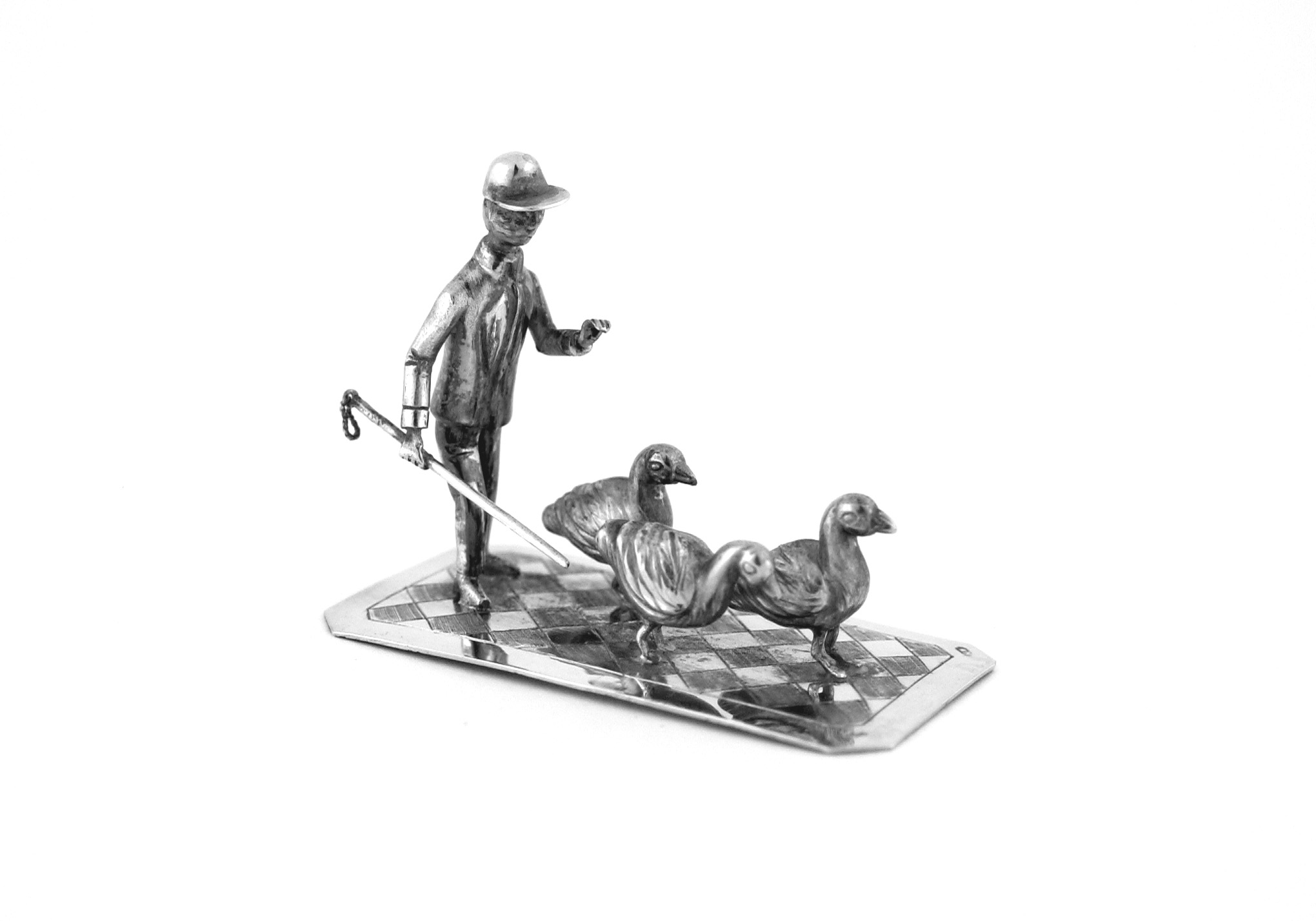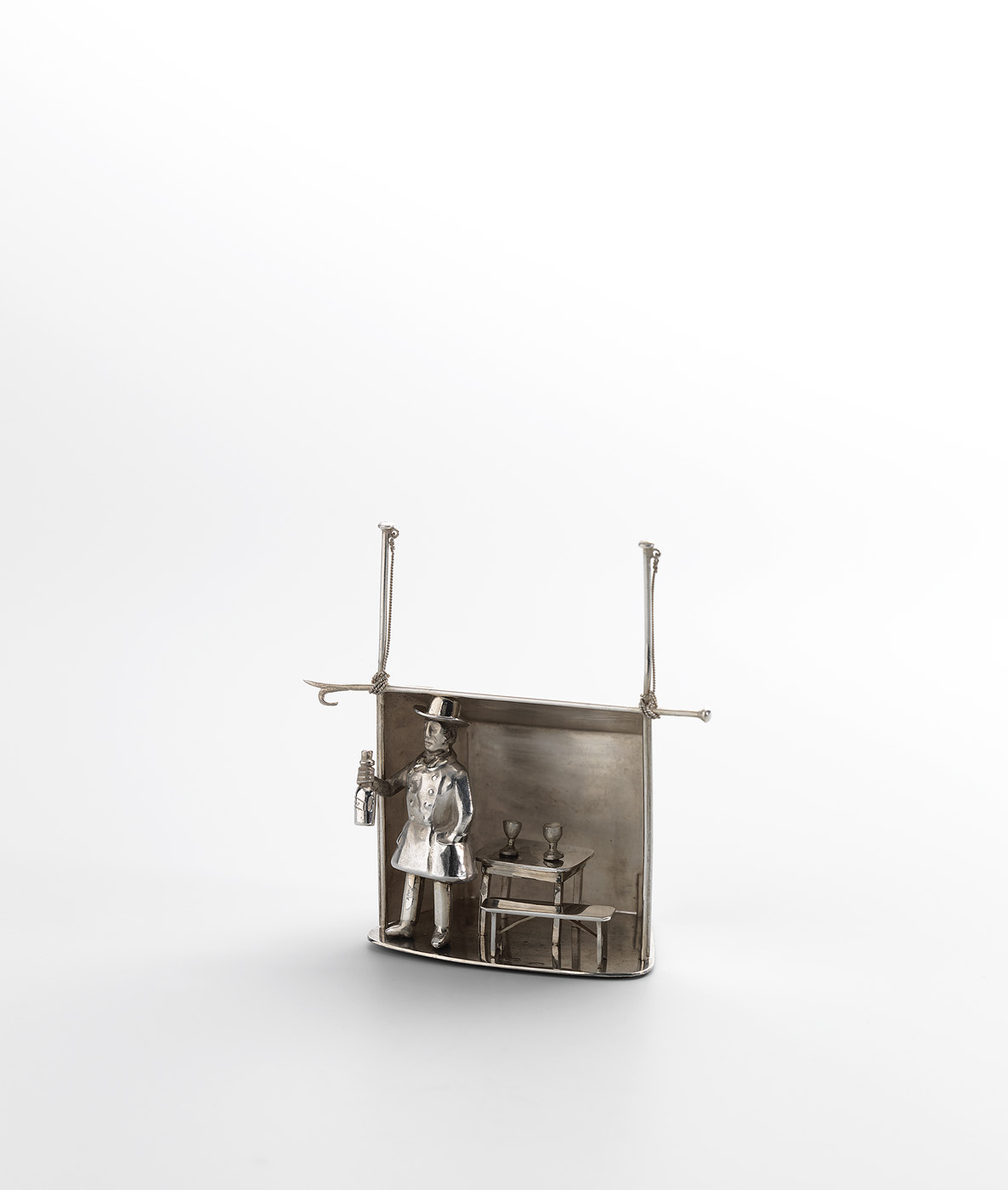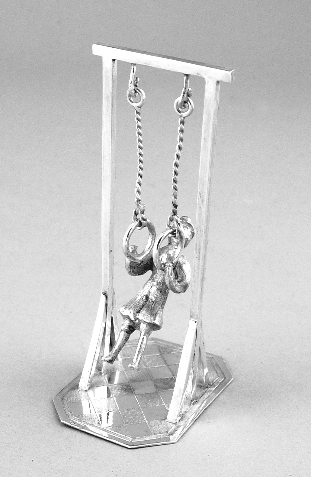 Duwslee met vrouwfiguur waarachter een duwende man o...