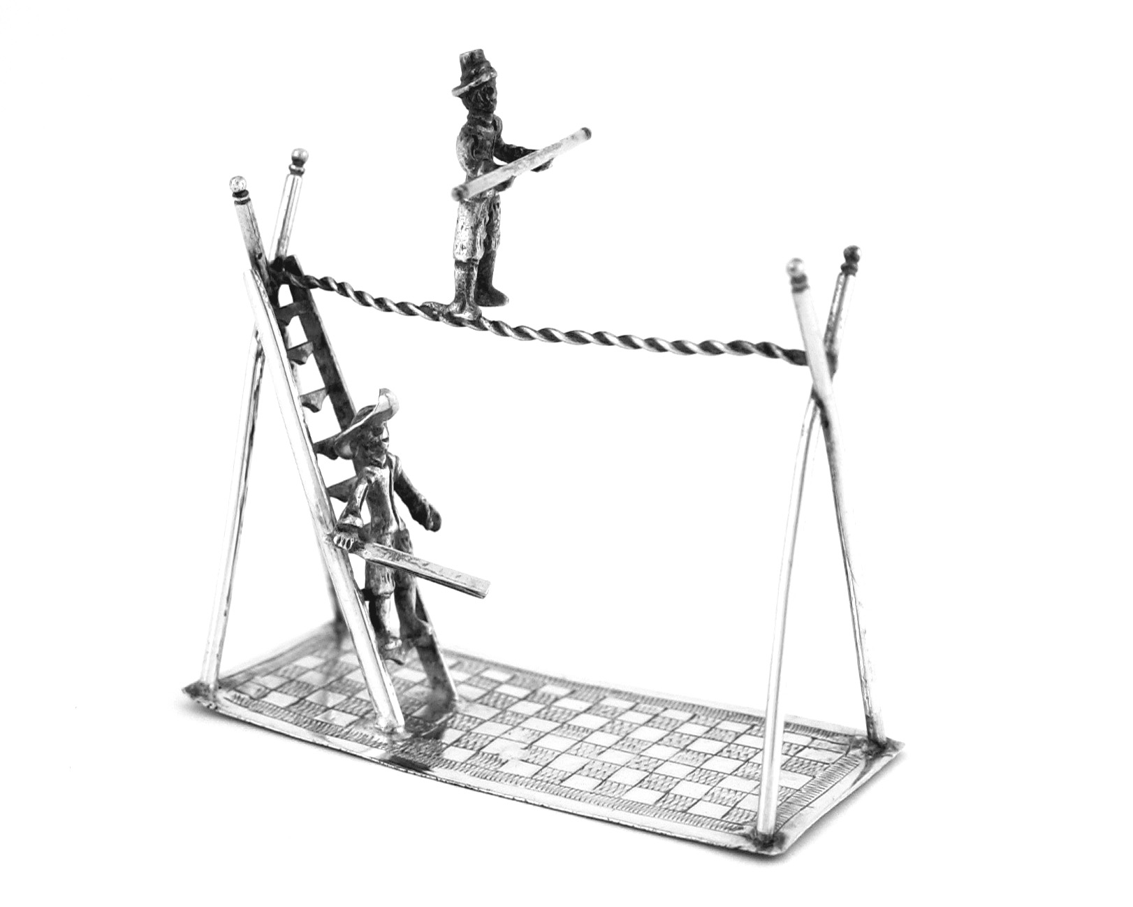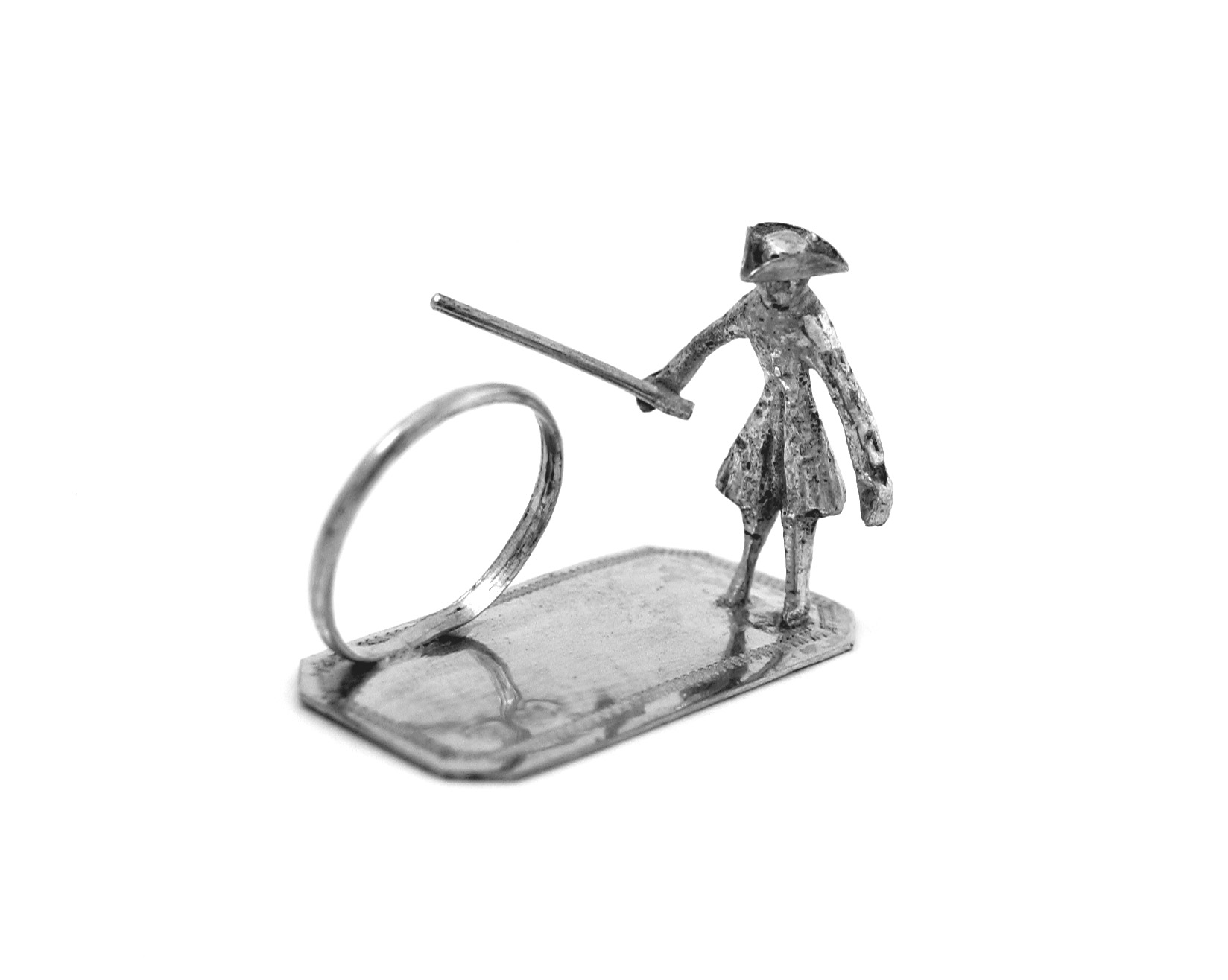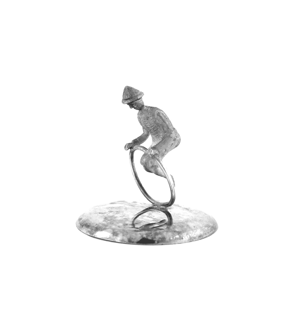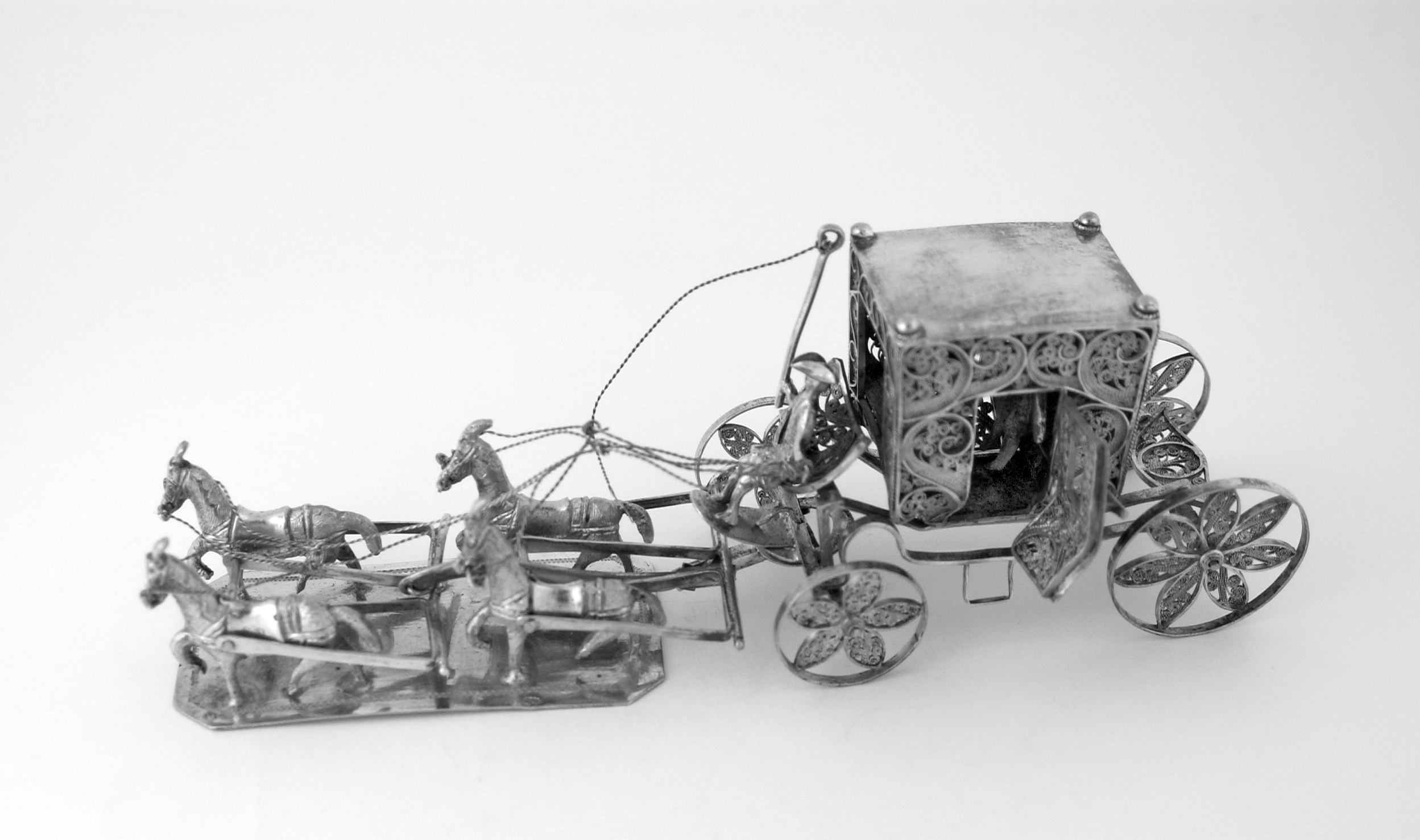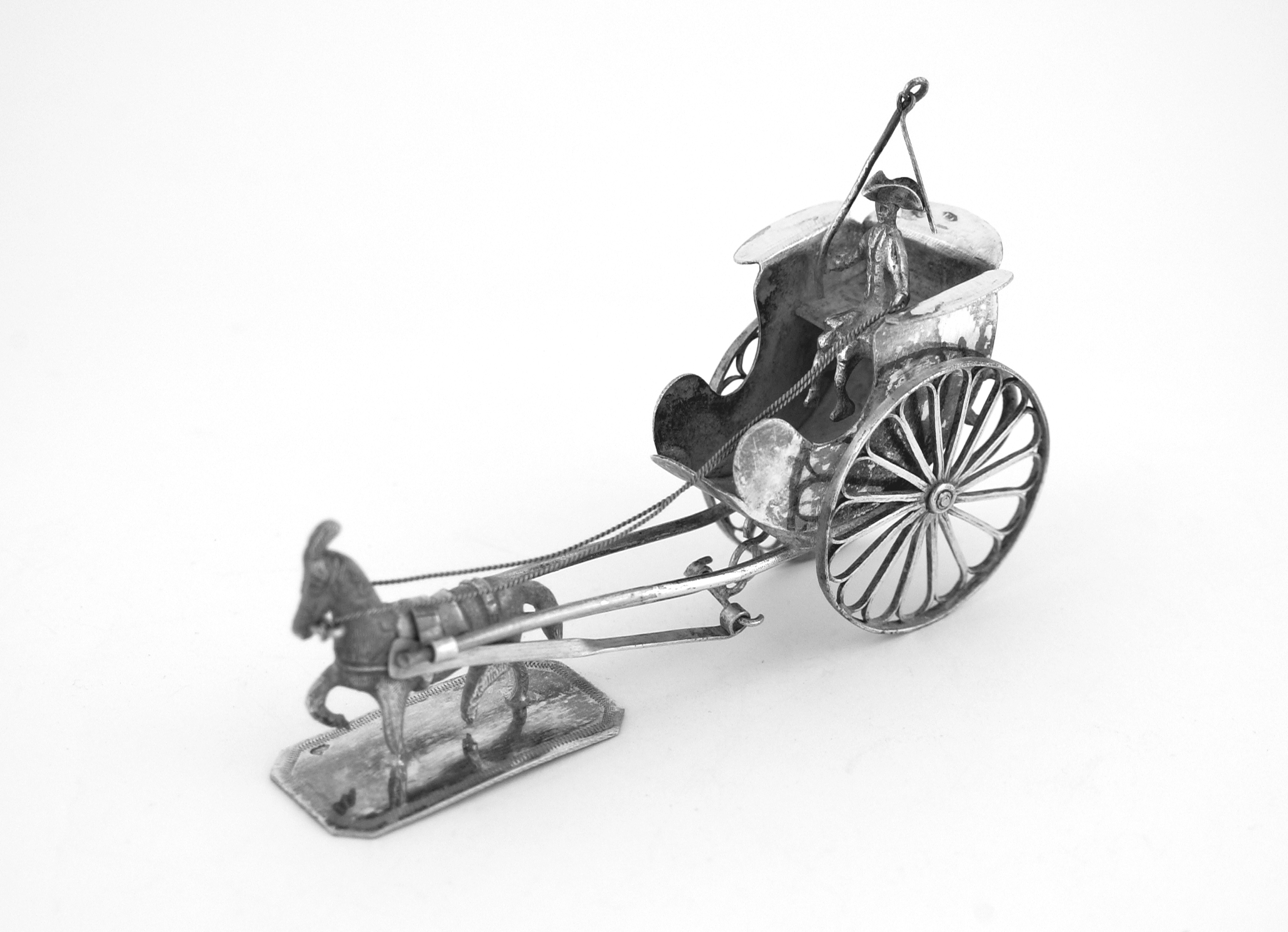 Duwslee met vrouwfiguur waarachter een duwende man o...