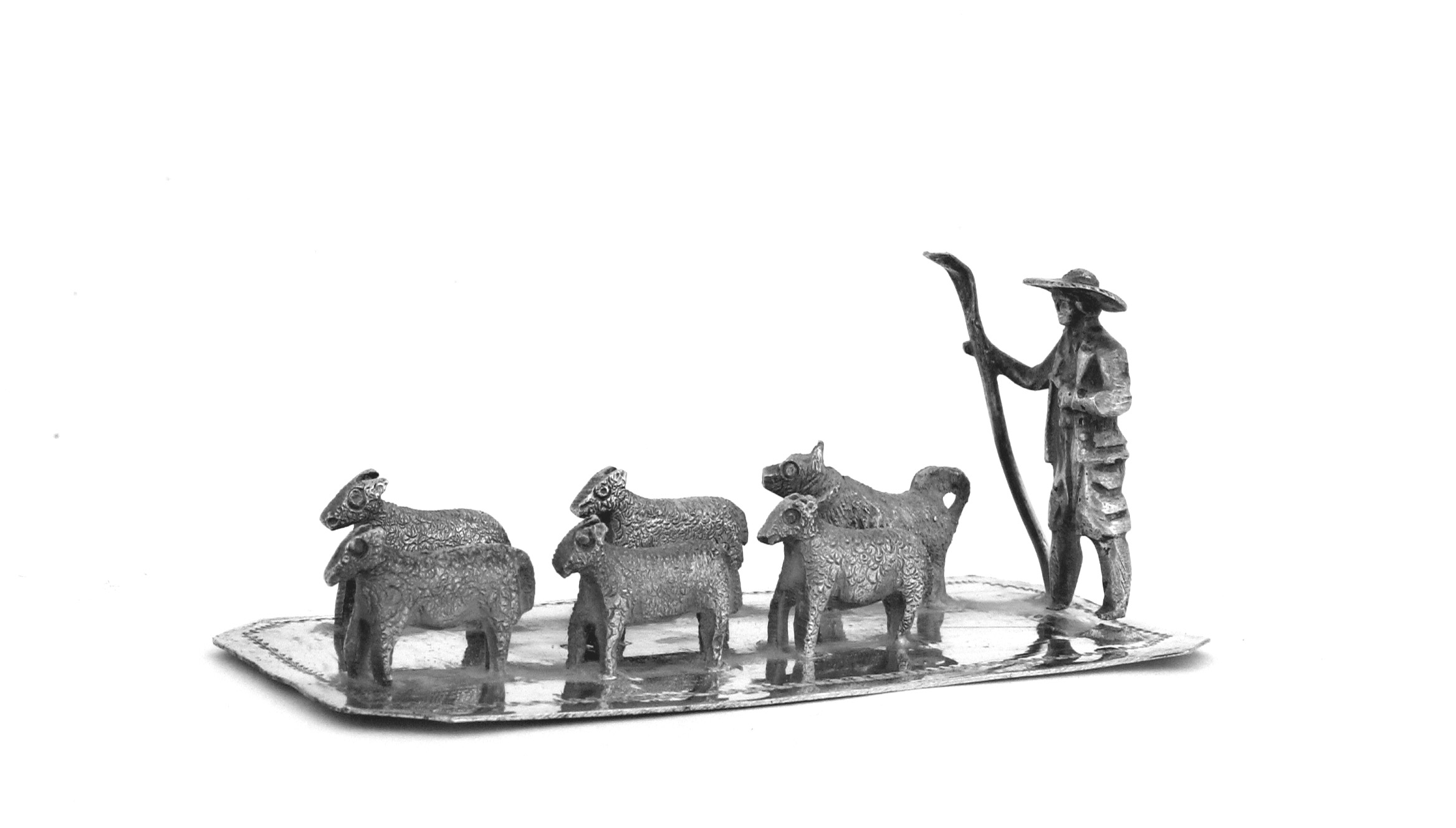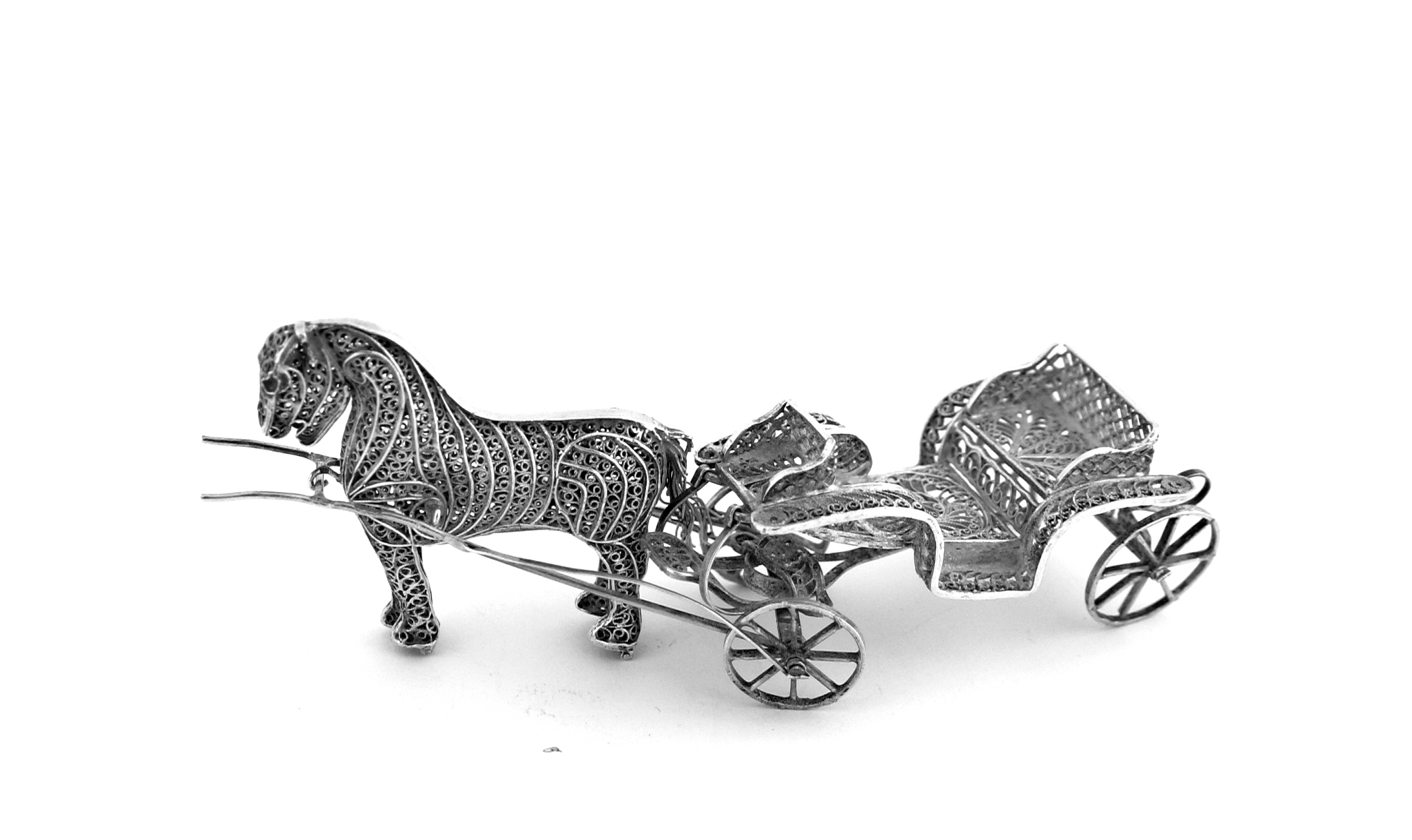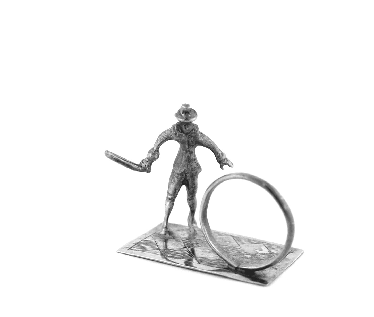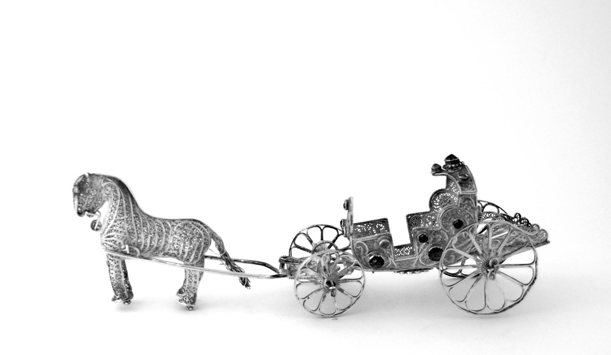 Duwslee met vrouwfiguur waarachter een duwende man o...