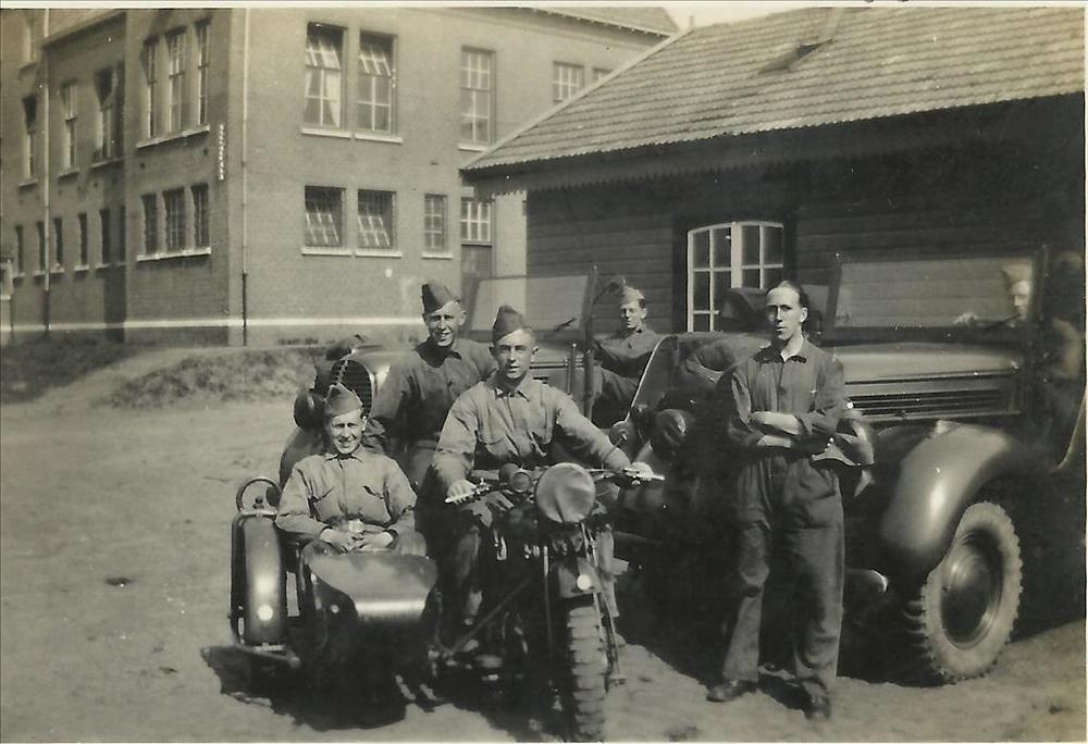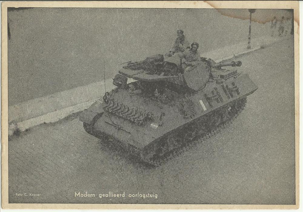 Foto van terugtrekkende Duitse voertuigen in Nederla...