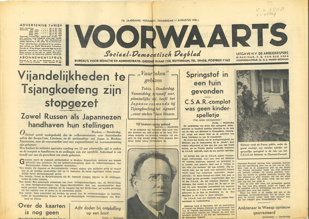 "Haagsche Courant" van " Maandag 1 augustus 1938" "N...