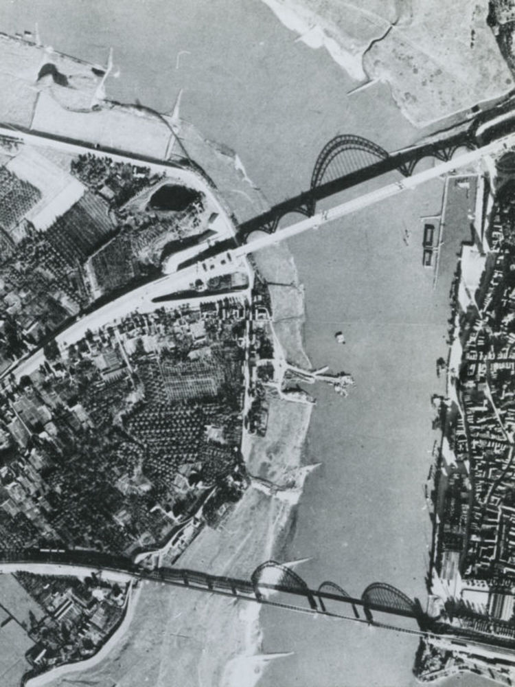 Luchtfoto stadcentrum Nijmegen voor Market Garden.