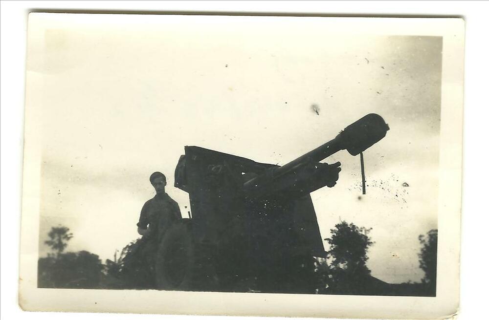 KNIl soldaat op artilleriestuk, Gombong 10 augustus ...