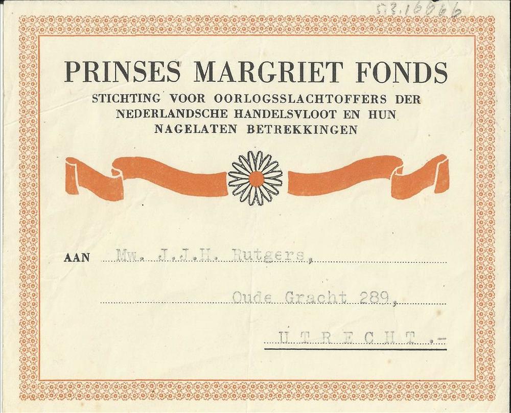 Adreslabel van het Prinses Margriet Fonds aan J.J.H....