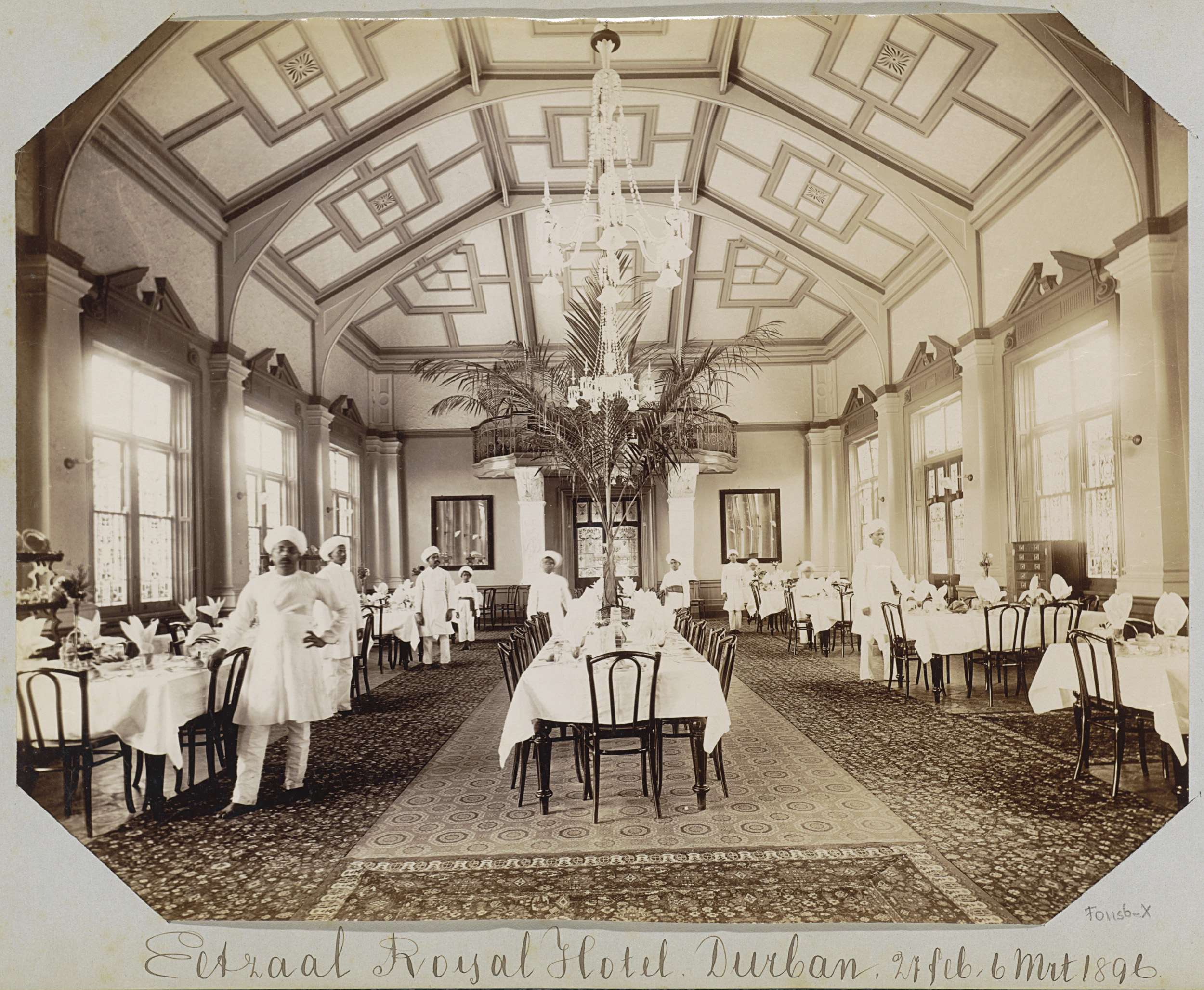 Interieur van de eetzaal in Royal Hotel te Durban, Z...