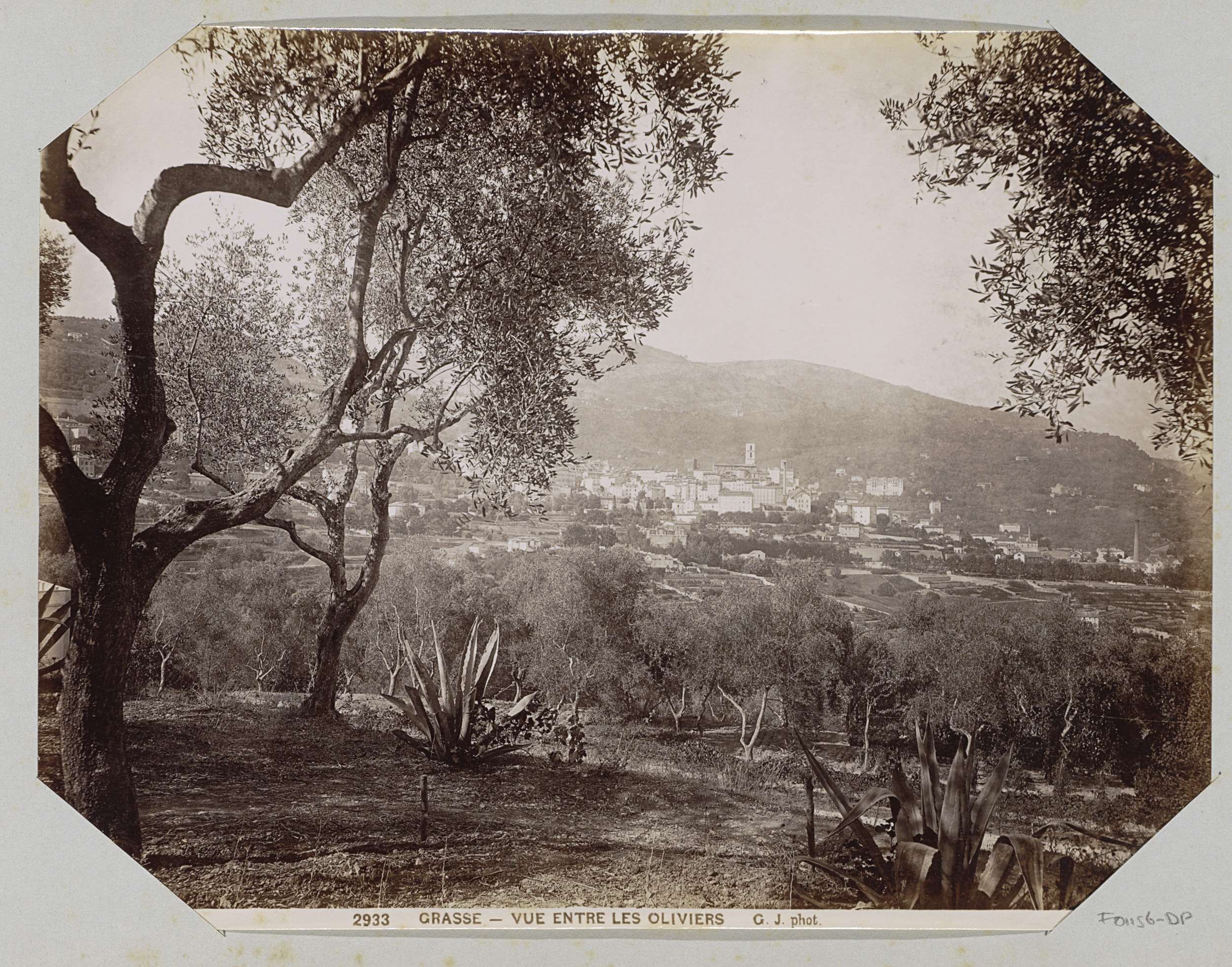Gezicht op Grasse met olijfbomen