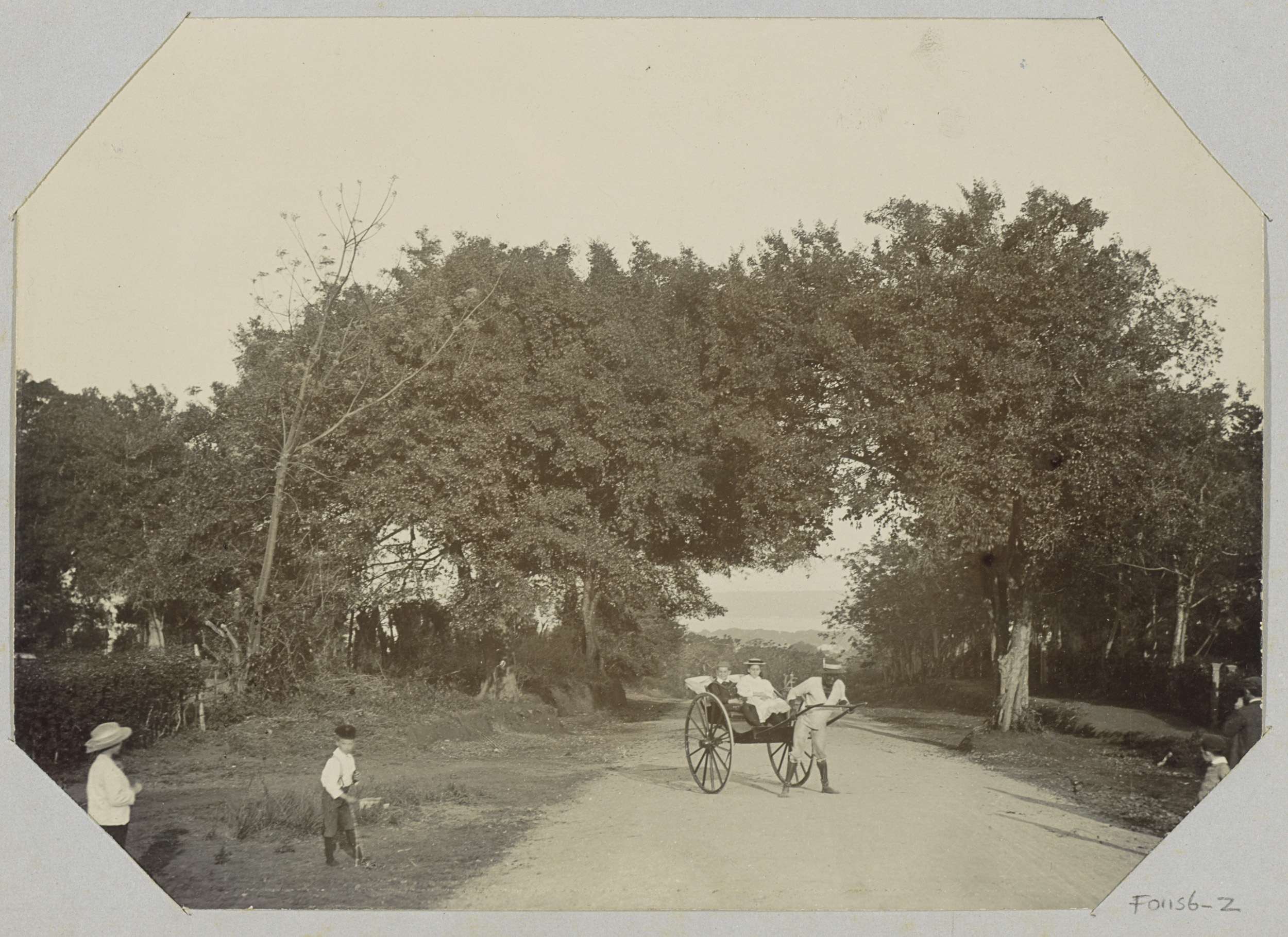 Straatgezicht met riksja met passagiers te Durban, Z...