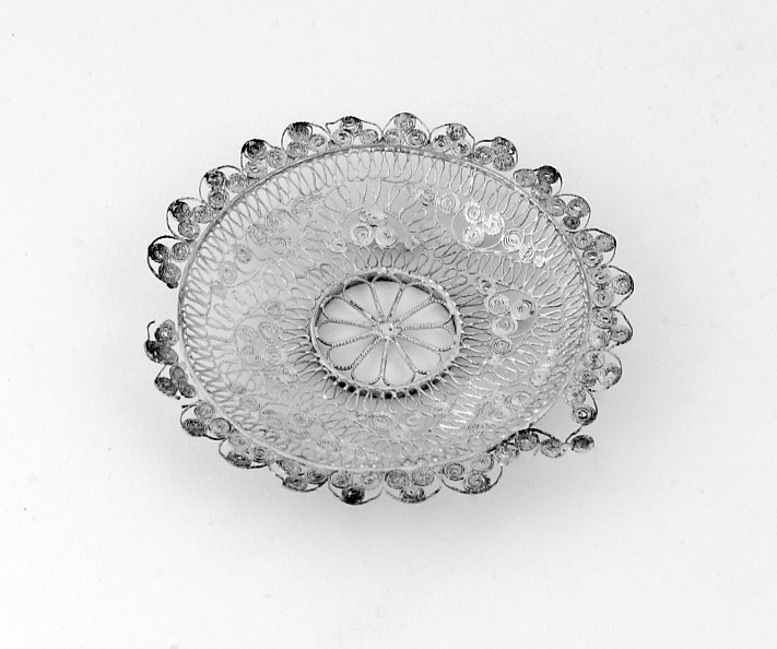 Zeven ronde platte filigrain bordjes
