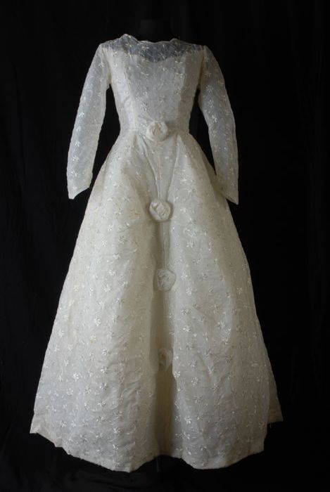 Trouwjapon van wit tule overtrokken met wit organza ...