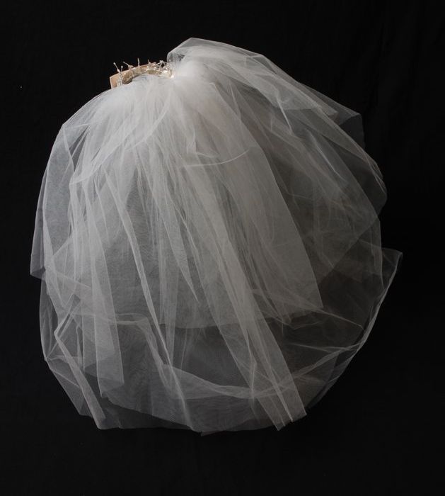 Bruidssluier, twee lagen wit tule aan champagnekleur...