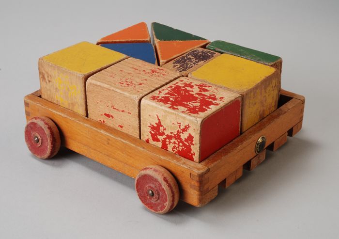 Houten wagen met tien gekleurde blokken