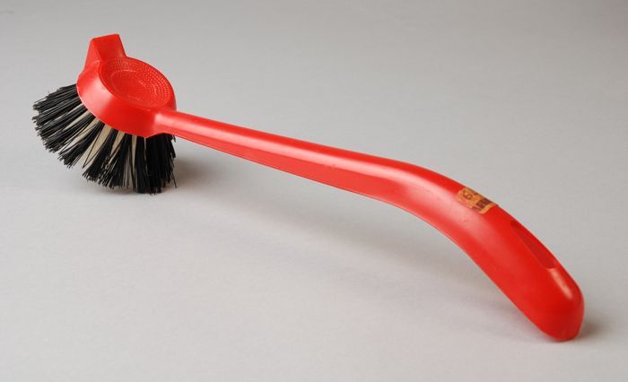 Rode plastic afwasborstel met kunststof haren