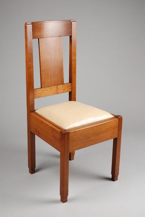 Eikenhouten stoel met nieuwe beige kunstleer bekleding