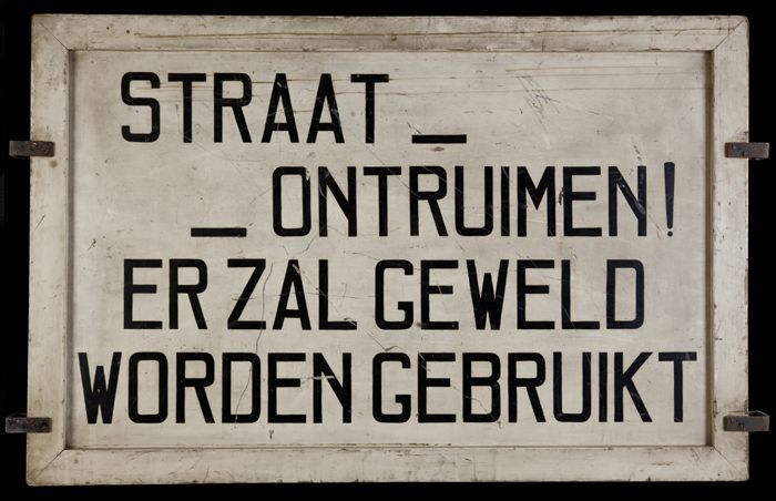 Waarschuwingsbord "Halt! Tegen hem wie verder gaat ..."