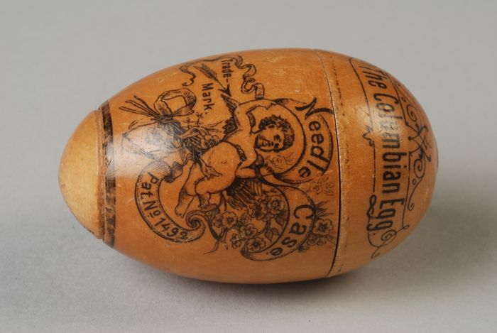 Eivormige houten maasbal met naaldenkoker, "The Colu...