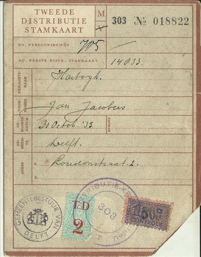 Tweede Distributiestamkaart van : Hartogh, Jan Jacobus