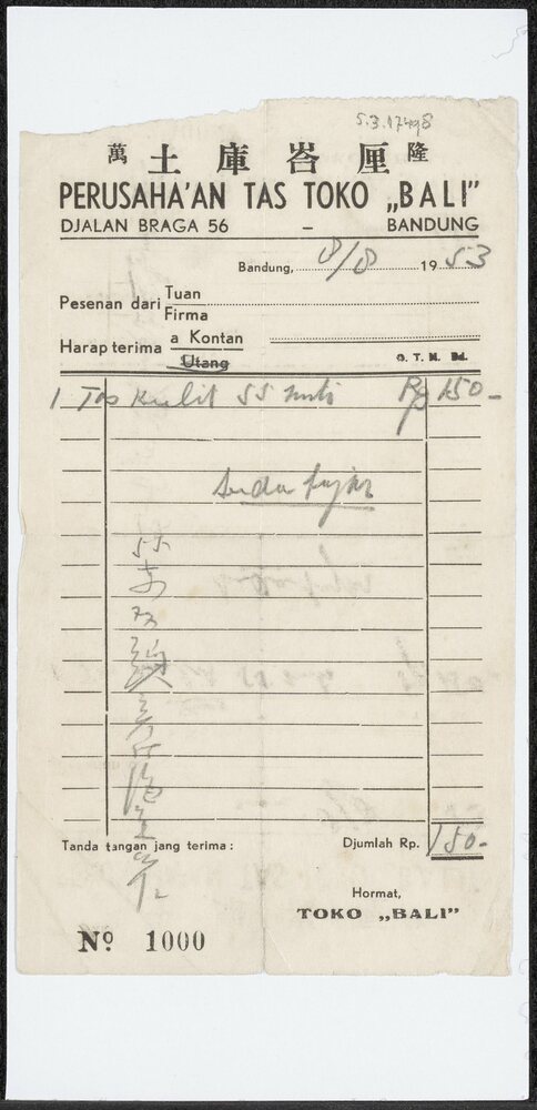 Rekening van 'Perusaga'an Tas Toko "Bali", Djalan Br...