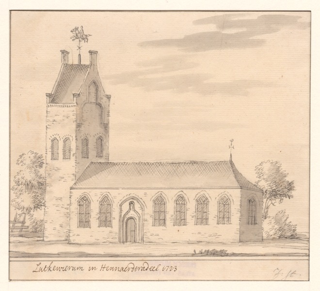 Gezicht op de kerk te Itens in Hennaarderadeel
