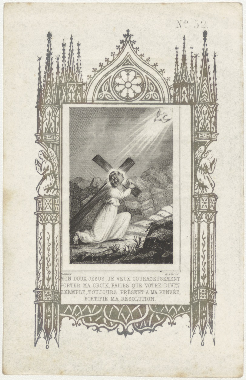 Draag het kruis van Jezus... kruis met hart, kz. Bid...