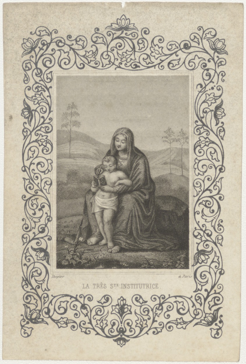 Maria met Christuskind (Frans), kz. Bid voor ziel Ku...