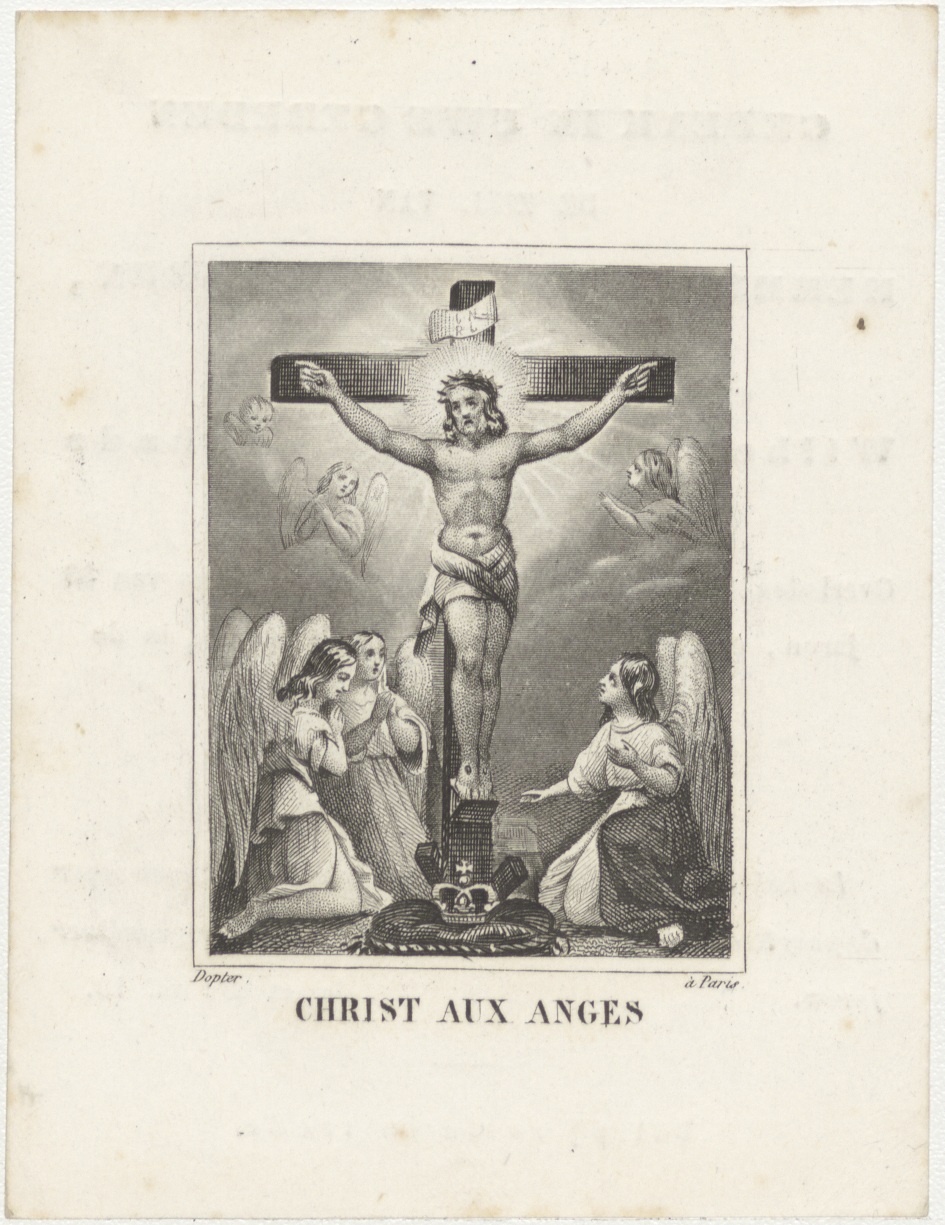 Christus met engelen (Frans), kz. Bid voor ziel Herm...