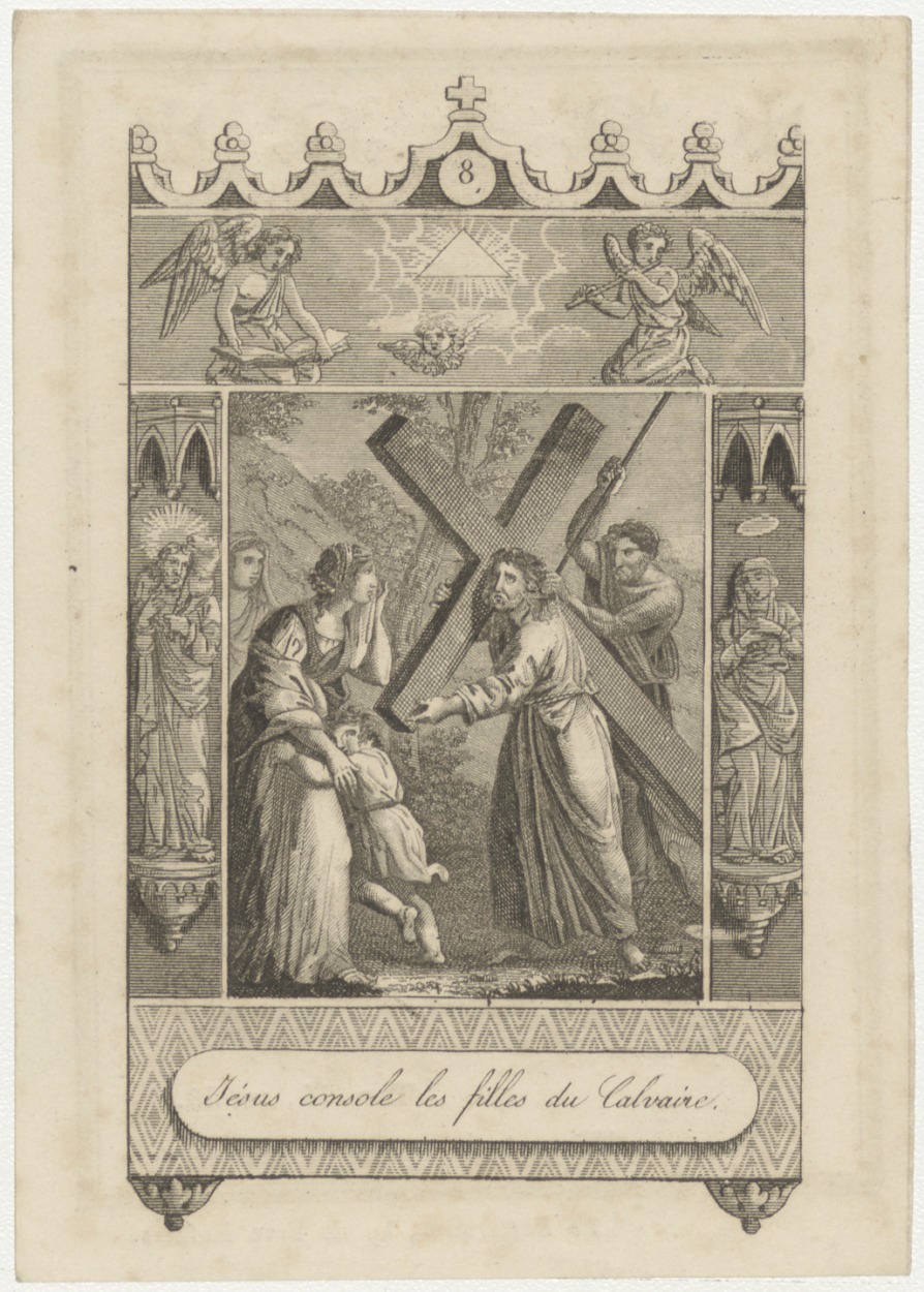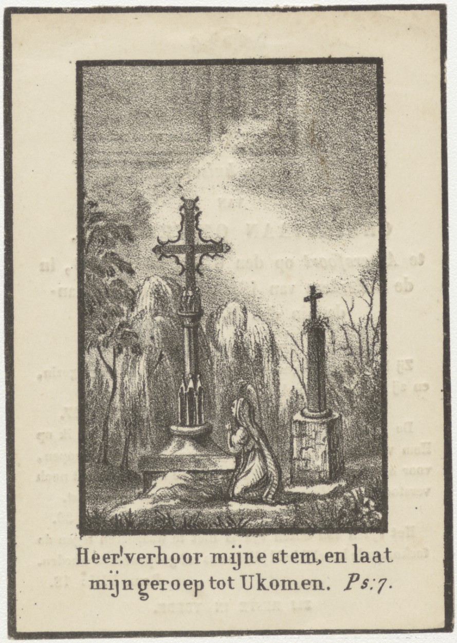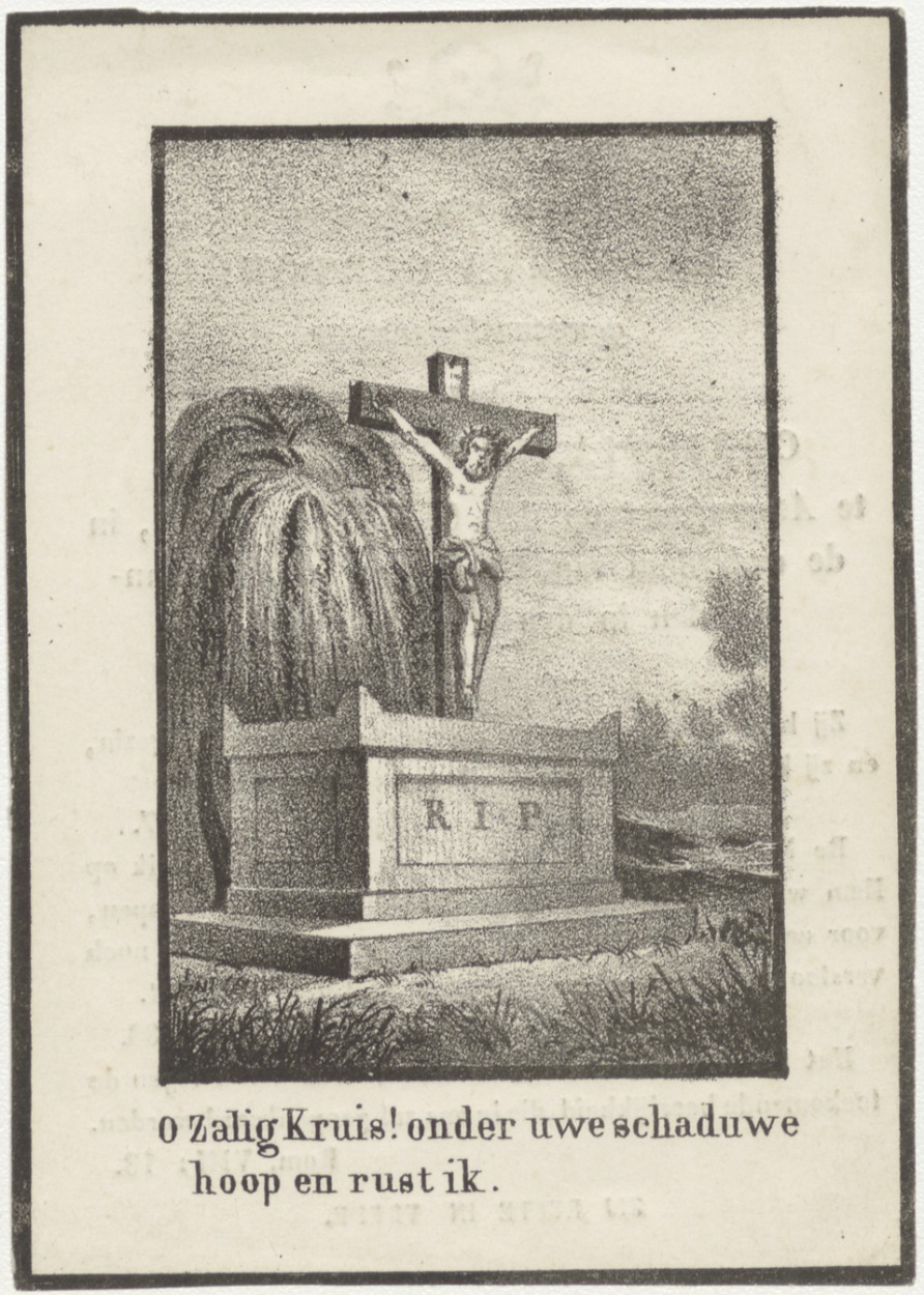 O zalig kruis... kerkhofscène, kz. Bid voor ziel Cor...