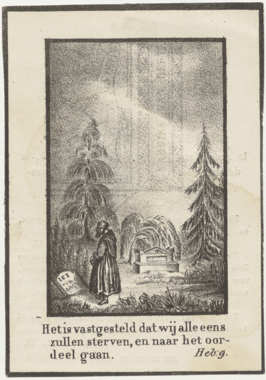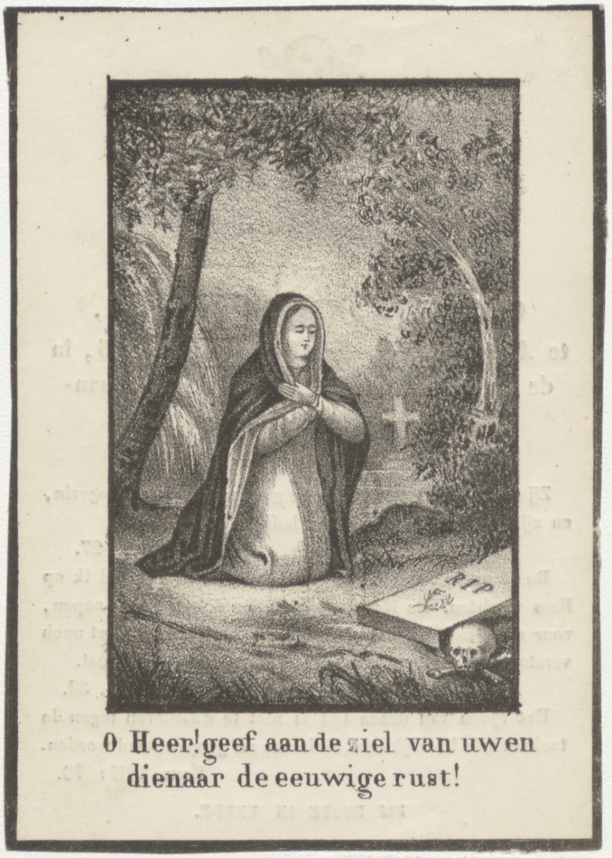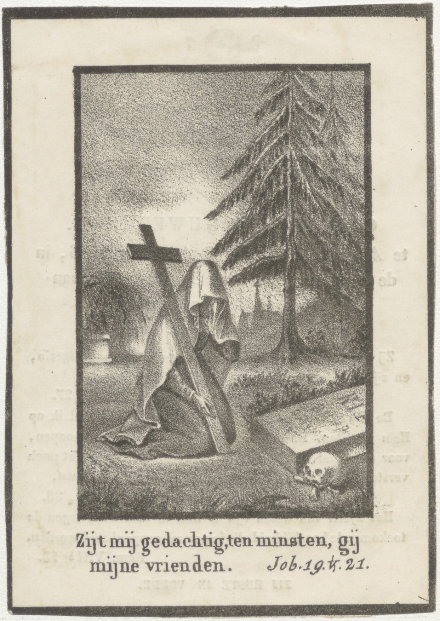 Zijt mij gedachtig... kerkhofscène, kz. Bid voor zie...