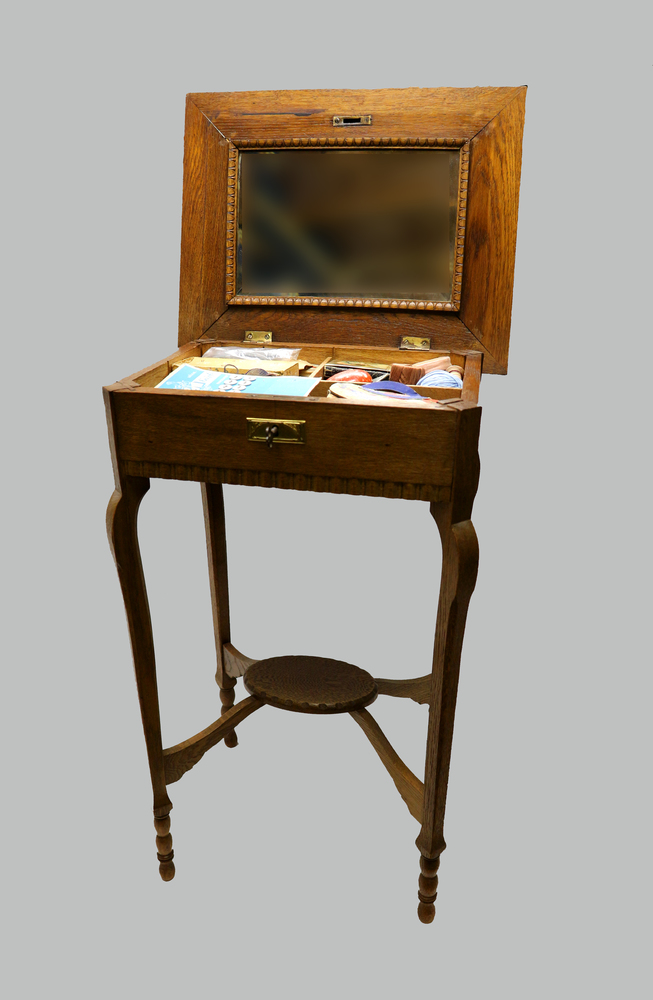 Naaitafel met een spiegel in het klepdeksel