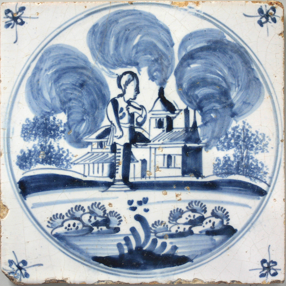 tegel van keramiek met tinglazuur, voorstellende: Lo...