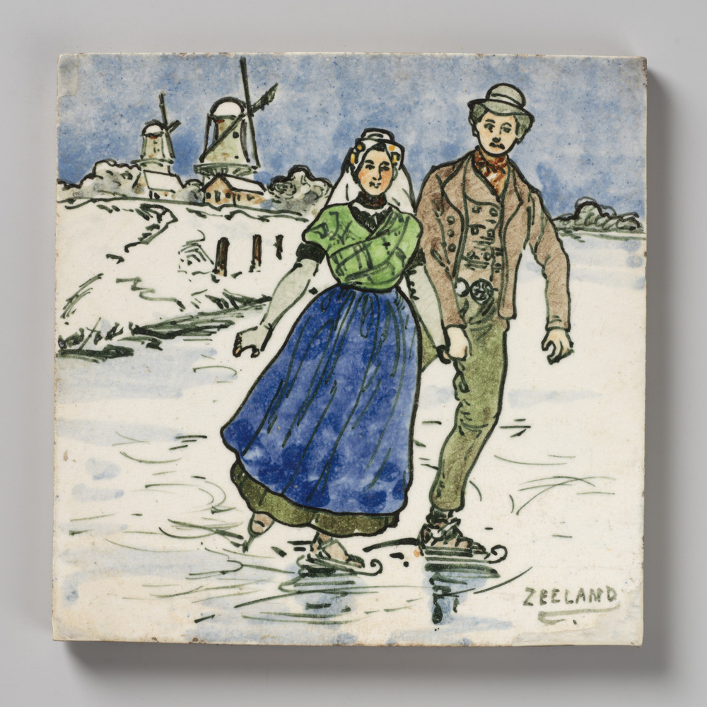 tegel van aardewerk met tinglazuur, voorstellende: s...