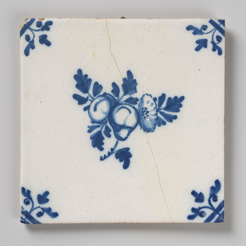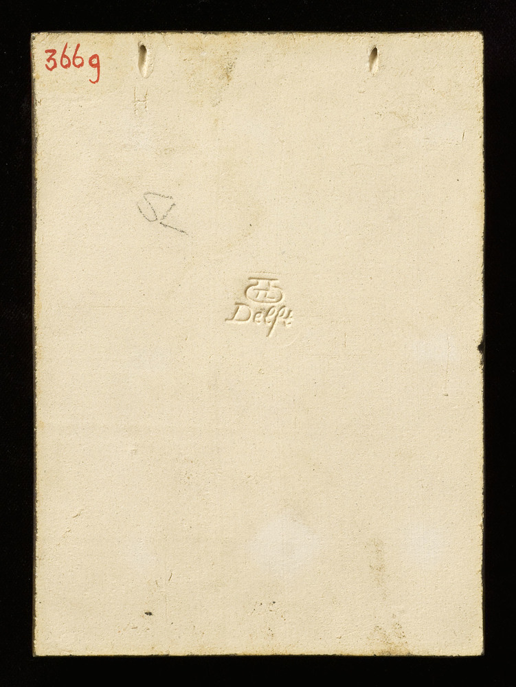Tegel van aardewerk met tinglazuur voorstellende: or...