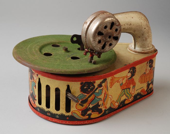 Blikken speelgoedgrammofoon met opwindmechanisme