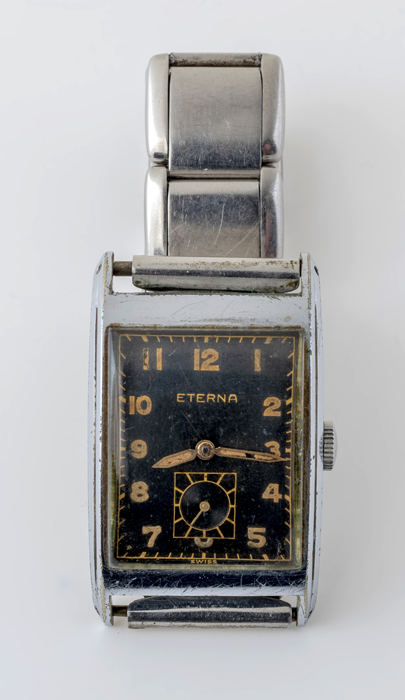 Rechthoekig herenhorloge van edelstaal met donkere r...