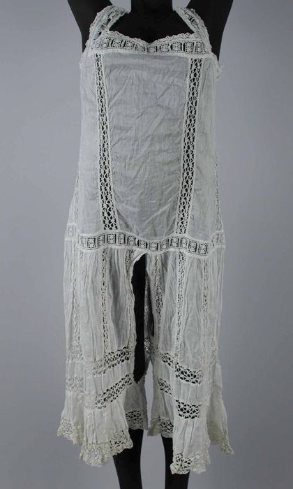 Combinaison van wit batist met veel kantincrustaties...