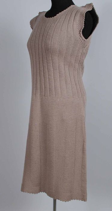 Knielange onderjurk gebreid van leverkleurige wol in...