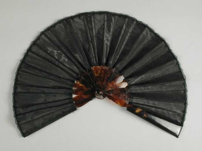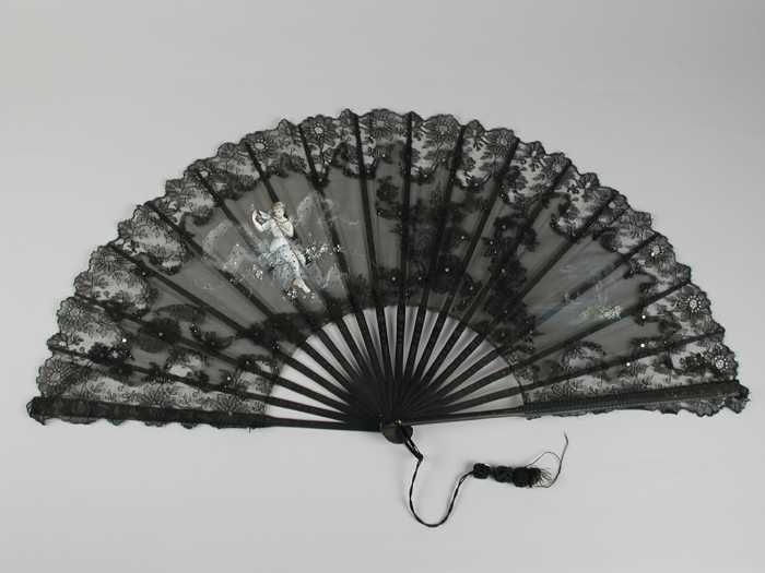 Vouwwaaier, montuur van bewerkt ivoor, blad van glas...