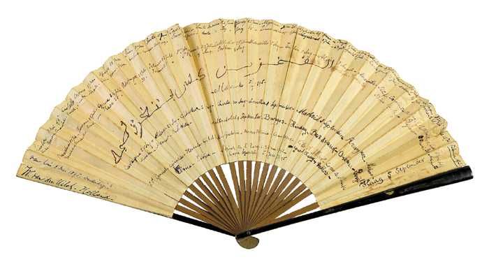 Vouwwaaier, montuur van glad ivoor, waaierblad van c...