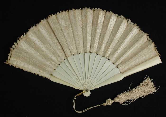 Briséwaaier, glad ivoor met smal crèmekleurig zijden...