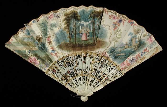 Vouwwaaier, benen van uitgezaagd ivoor, waaierblad v...