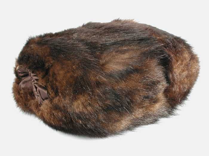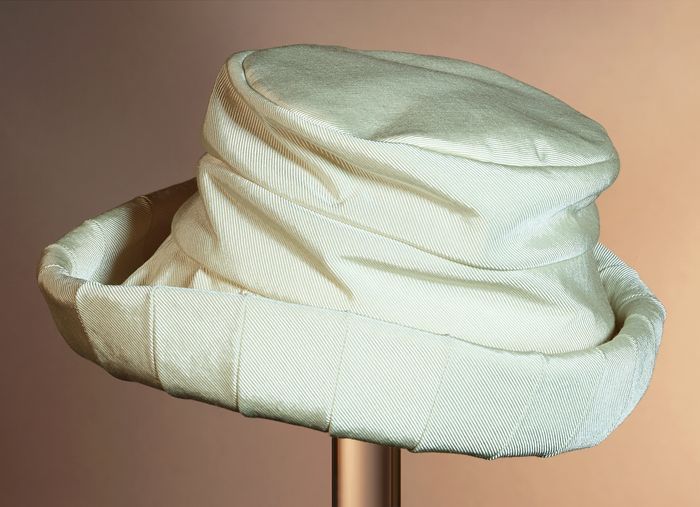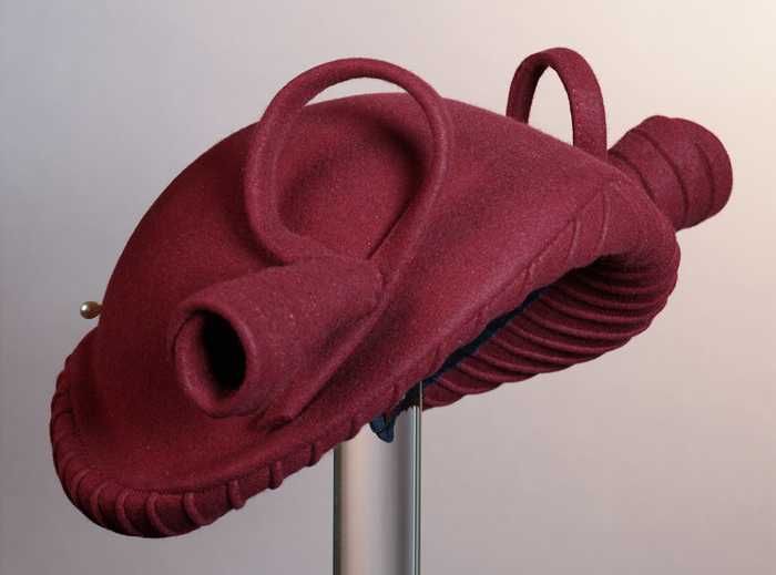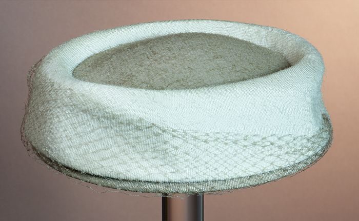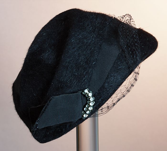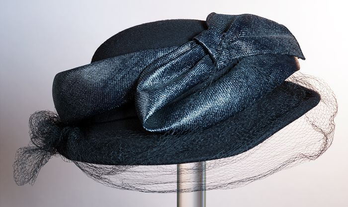 Dameshoed, rond, zwart vilt, om bol lint van stroban...