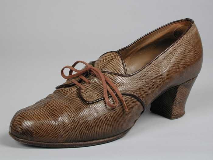 Bruine slangenleren damesschoenen met vetersluiting ...