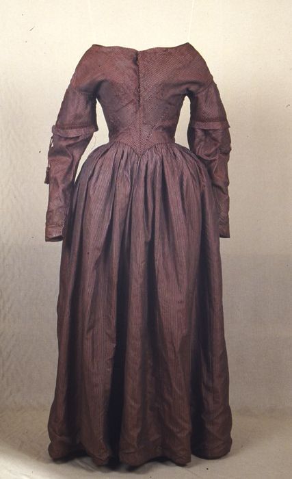 Tweedelige japon of mantelpak, donkerbruine jas en rok