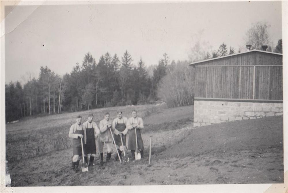 Belgische krijgsgevangenen; drie met twee verpleegsters