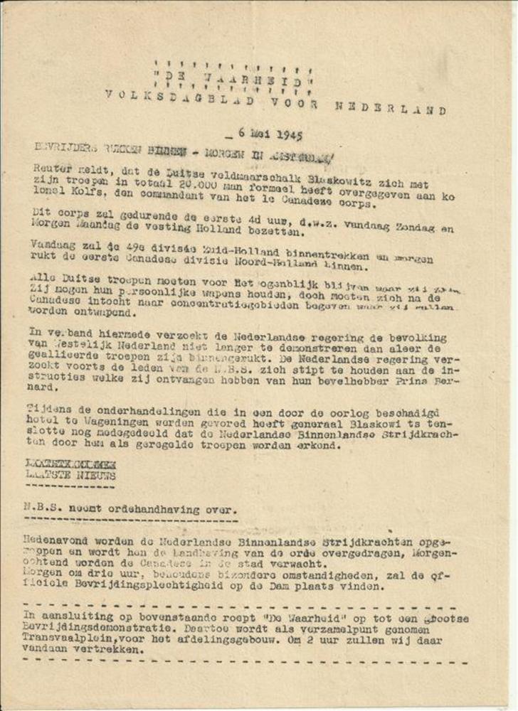 De Waarheid Volksdagblad voor Nederland 6 mei 1945