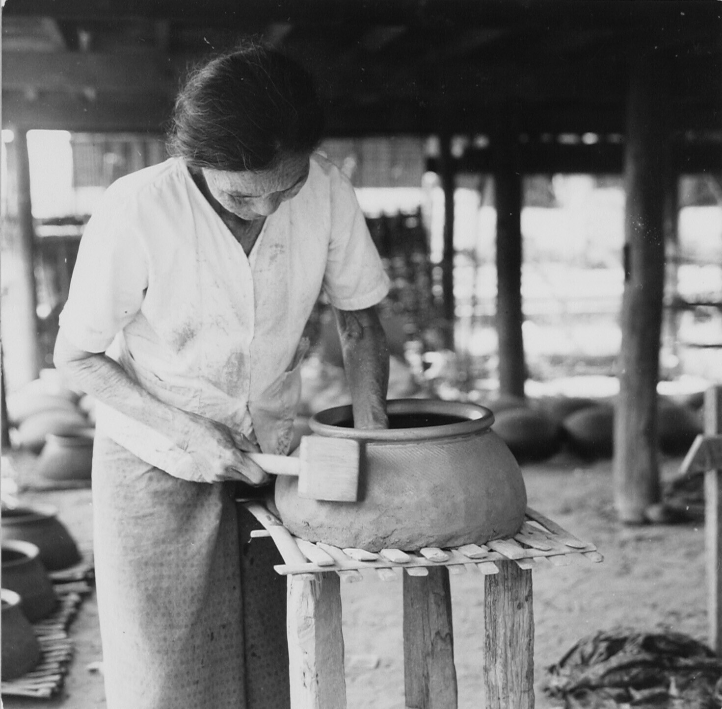 Houten model van een opiumschuiver