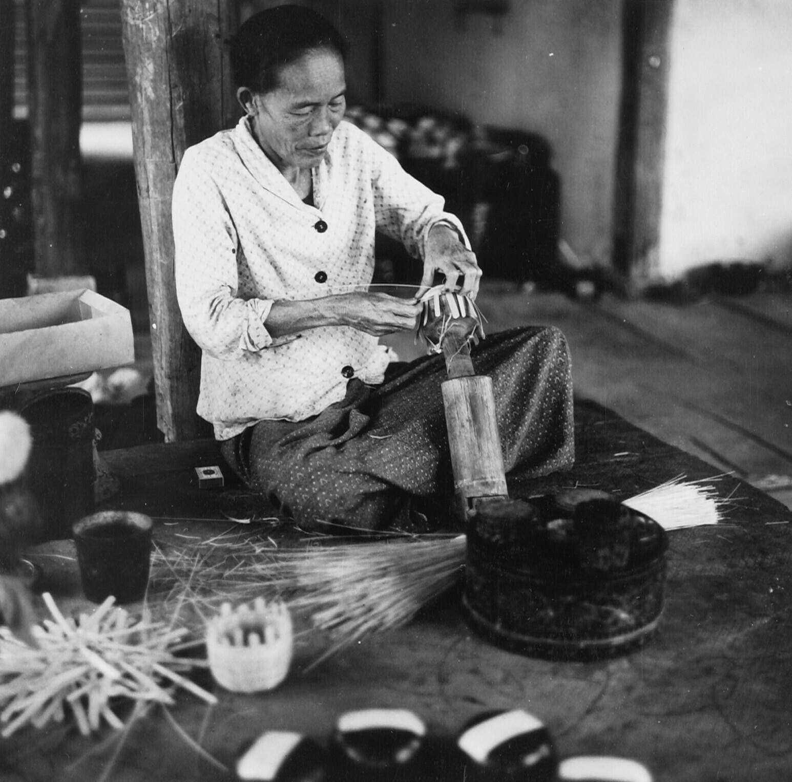 Om een houten mal wordt eerst van dunne reepjes een ...