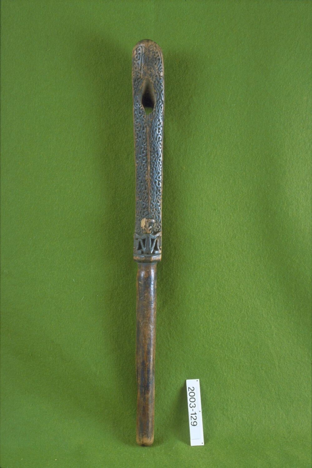 Houten spatel met wallaby tand gebruikt als spatel e...