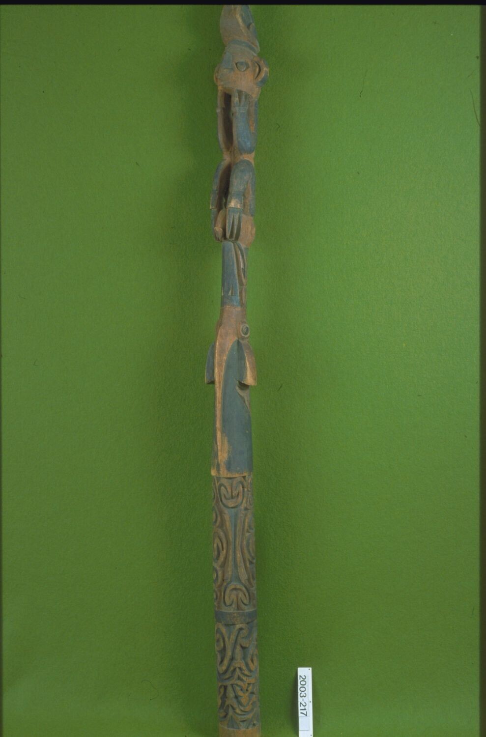 Houten staf met kop punt slang en haanmotief eigendo...